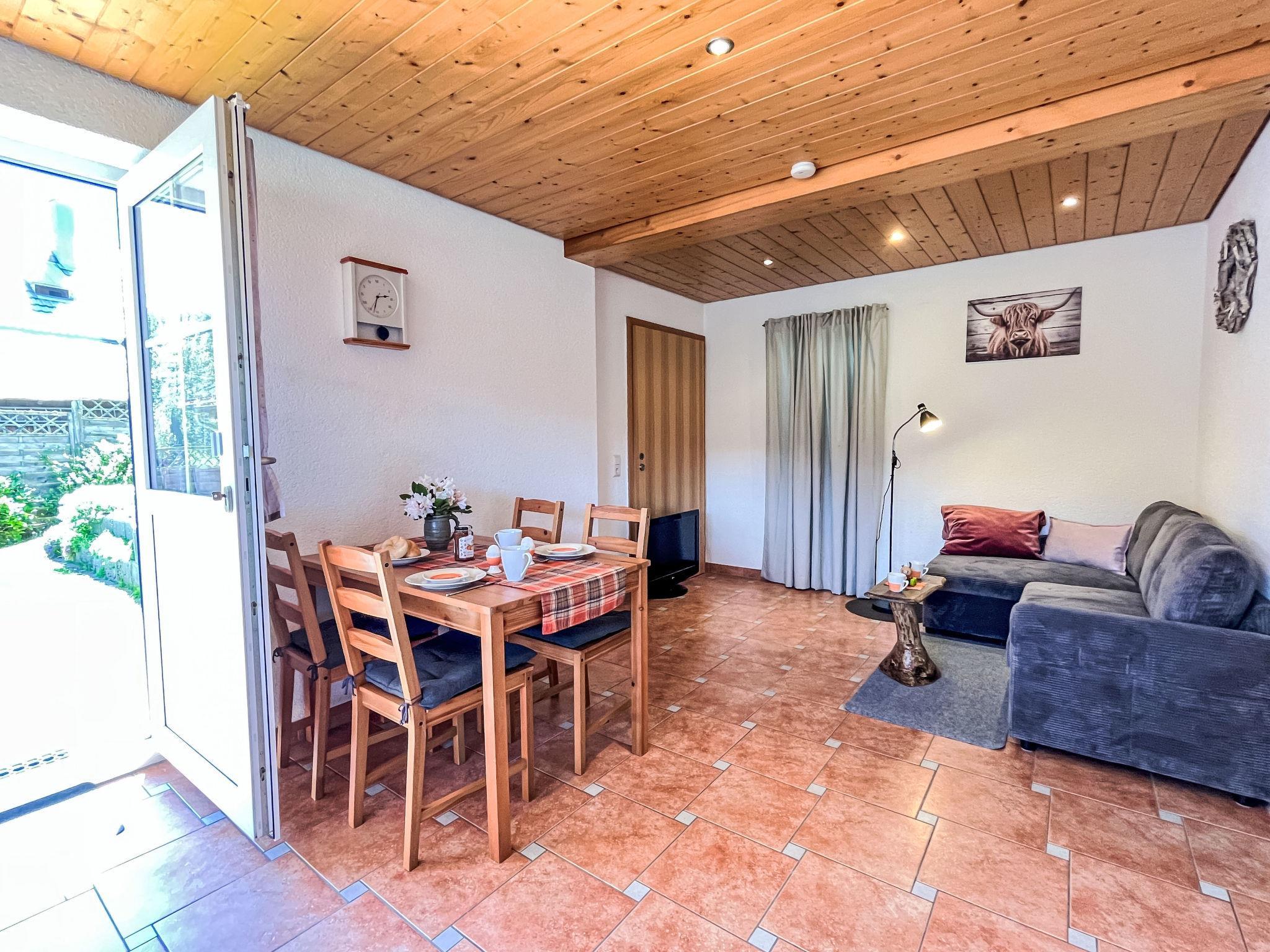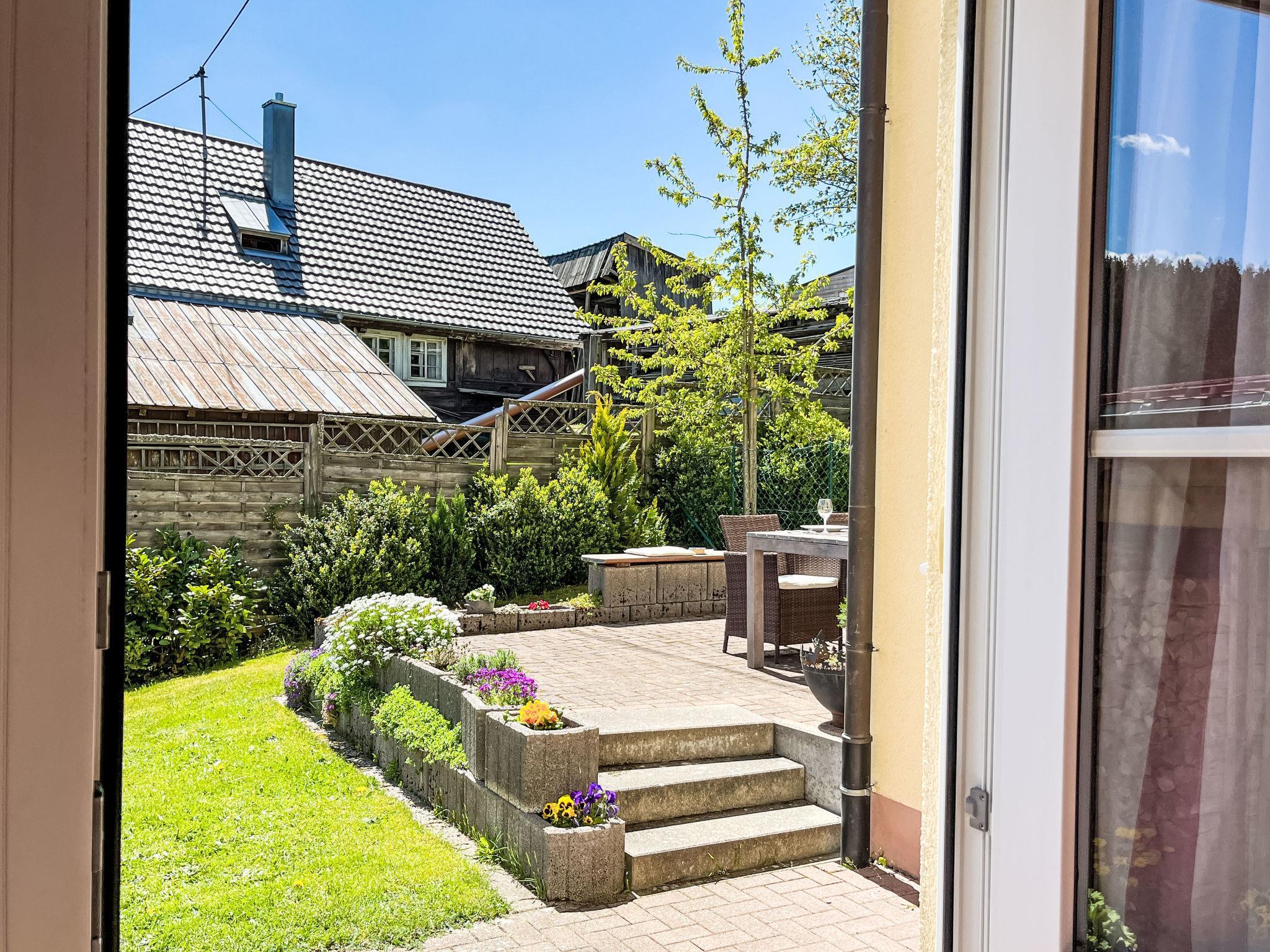 "Fewo Knöpfle", 2-room apartment on the upper ground floor. Object suitable for 2 adults + 1 child. Spacious and bright, beautiful furnishings: living/dining room with 1 sofabed (120 cm, length 180 cm), dining table and satellite TV (flat screen). Exit to the patio. 1 double bedroom with 1 double bed (180 cm, length 200 cm), satellite TV (flat screen). Alcove, without window with 1 sleeping facility (1 x 100 cm, length 180 cm). Large, open kitchen (oven, dishwasher, 4 ceramic glass hob hotplates, toaster, kettle, microwave, electric coffee machine). Bath/shower/WC. Heating. Large patio 18 m2. Terrace furniture, barbecue. Beautiful view of the garden. Facilities: washing machine, children's high chair, baby cot, hair dryer. Internet (WiFi, free). Parking (roofed) at the house. Please note: non-smokers only. Maximum 1 pet/ dog allowed. Private entrance, smoke alarm, fire extinguisher. In alternativa al letto a soppalco (alcova per dormire), il piccolo divano letto (soggiorno) può essere utilizzato da un bambino (fino a 1,60 m). Bed layout is flexible. There are more sleeping options available than the maximum number of people allowed which may, however, not be exceeded.