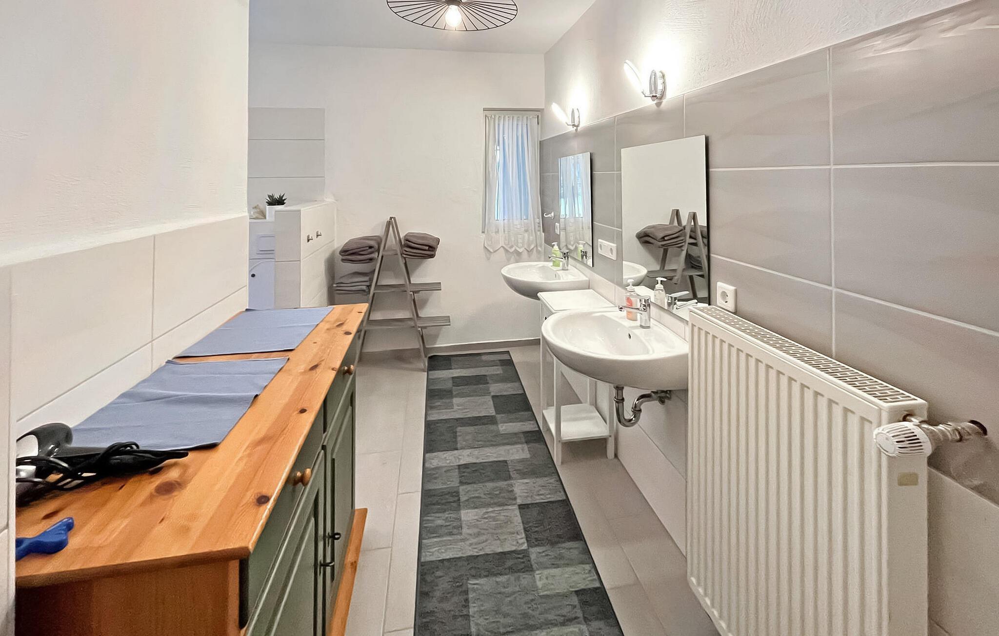 Die ca. 90 qm große Dreizimmerwohnung für max. 4 Erwachsene und 2 Kinder verfügt über ein Wohnzimmer (Polstermöbel, Esstisch, Flachbild-TV, Stereoanlage), zwei Schlafzimmer (jeweils Doppelbett, TV), eine separate Küche (E-Herd mit Backofen, Kühlschrank mit Gefrierfach, Geschirrspüler, Esstheke, diverse Küchengeräte, Waschmaschine) und ein geräumiges Badezimmer mit Doppelwaschtisch und Dusche/WC. Außerdem gibt es einen überdachten Eingangsbereich mit Sitzecke. Die Räume werden mit einer Zentralheizung beheizt. Für Kleinkinder kann ein Kinderbett und ein Hochstuhl bereitgestellt werden. Internet (W-Lan) ist ebenfalls vorhanden. Draußen gibt es einen Außensitzplatz mit Grill. Es gibt auch einen Parkplatz. Im Gesamtpreis sind Endreinigung, Bettwäsche, Handtücher sowie Wasser- und Stromverbrauch enthalten.