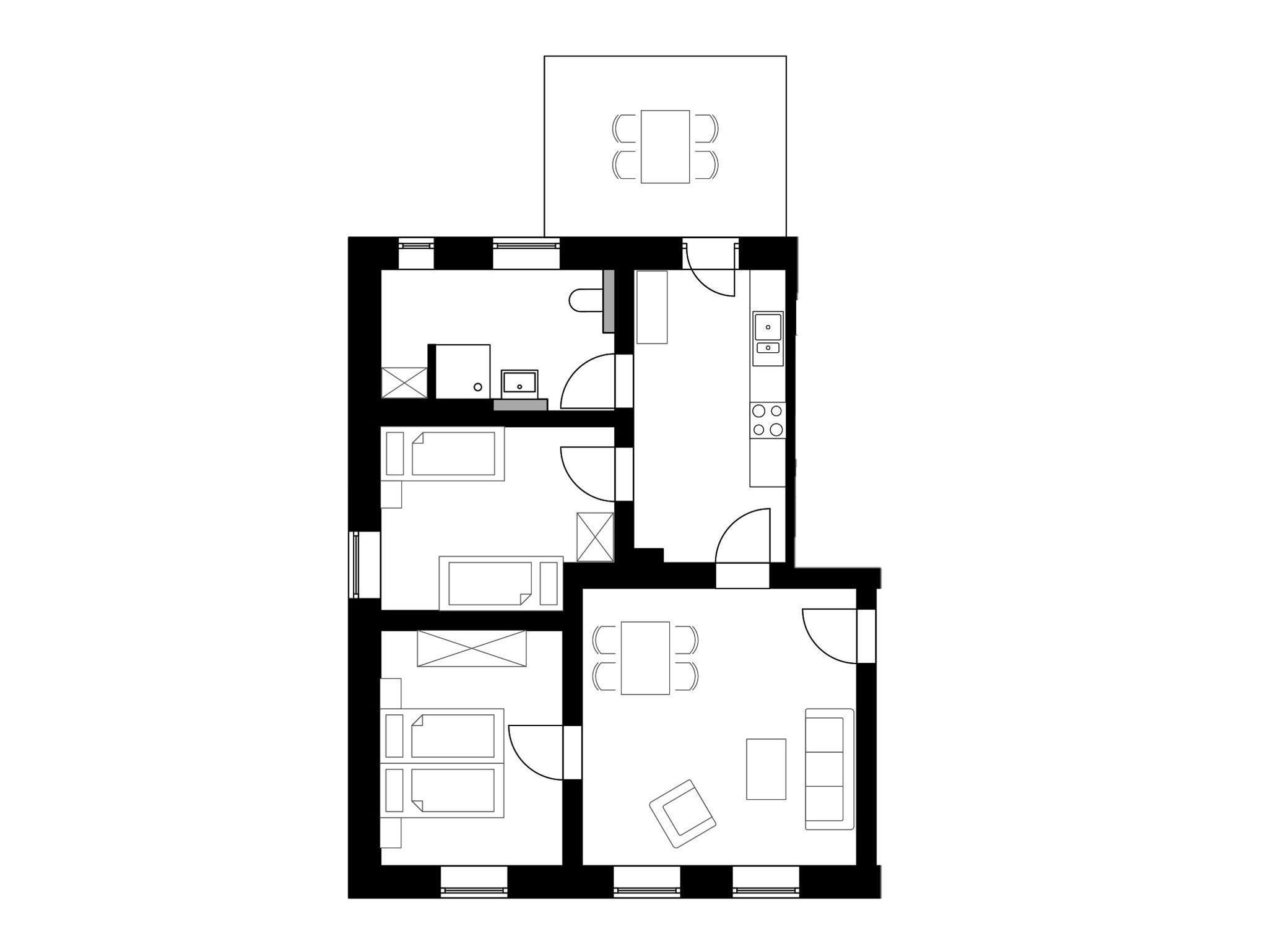 Die Wohnung ist Teil der Ferienkooperative Elme und Horst – Uns verbindet die Freude am Miteinander, der Wunsch nach Leichtigkeit und die Neugier auf Überraschendes. Sie sind auch herzlich zu den Aktivitäten im Pensionsgebäude gegenüber eingeladen.