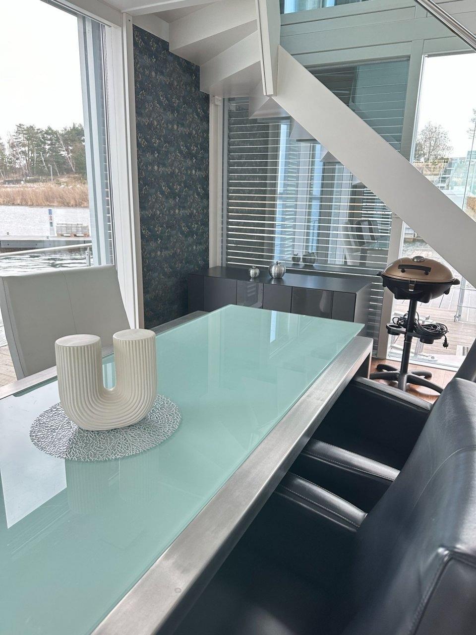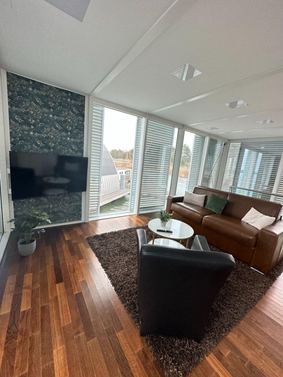 5 Sterne Kategorie für 2 Personen mit der Möglichkeit 2 Betten aufzustockenGenießen Sie traumhafte Stunden im Ferienhaus "Silent" direkt auf dem Wasser. Auf ca.100 m² erleben Sie Exklusivität und Komfort pur.Die großzügig angelegte Dachterrasse verspricht einen traumhaften Ausblick in den Sonnenuntergang.Wenn Natur und Ruhe aufeinander treffen, dann spricht man von Erholung. Erleben Sie bei uns die Unterkunft der anderen Art und lassen Sie Ihre Seele treiben. Ob Sonne tanken am Strand oder an Deck einer unserer Unterkünfte, hier können Sie abschalten.?Die Gegend rund um den Geierswalder See mitten im Lausitzer Seenland, lädt zu langen Spaziergängen oder Radtouren ein. Wer sich lieber auf dem Wasser amüsieren möchte, kann während seiner Reisedauer, sich ein Boot an verschiedenen Stellen ausleihen und die Weitläufigkeit der untereinander verbunden Seen nutzen.Aber auch alle anderen Wassersportbegeisterten kommen auf Ihre Kosten. Verschiedene Anbieter verleihen Boote, Stand Up Paddle, Wasserski uvm.?Der Geierswalder See wurde mit rund 92 Millionen Kubikmeter Wasser geflutet und gehört zum Lausitzer Seenland, welches ein künstlich angelegtes Seengebiet ist. Die Besonderheit des Sees ist die Landesgrenze zwischen Sachsen und Brandenburg, welche Ihn durchquert.