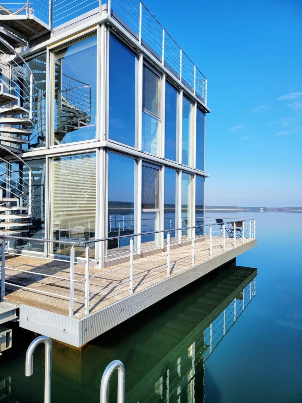 Genießen Sie traumhafte Stunden in der Ferienwohnung "Rooftop", direkt auf dem Wasser des Geierswalder Sees . Auf ca.47 m² erleben Sie Exklusivität und Komfort pur.Die großzügig angelegte Dachterrasse verspricht einen traumhaften Ausblick in den Sonnenuntergang.Wenn Natur und Ruhe aufeinander treffen, dann spricht man von Erholung. Erleben Sie bei uns die Unterkunft der anderen Art und lassen Sie Ihre Seele treiben. Ob Sonne tanken am Strand oder an Deck einer unserer Unterkünfte, hier können Sie abschalten.?Die Gegend rund um den Geierswalder See mitten im Lausitzer Seenland, lädt zu langen Spaziergängen oder Radtouren ein. Wer sich lieber auf dem Wasser amüsieren möchte, kann während seiner Reisedauer ein Boot an verschiedenen Stellen ausleihen und die Weitläufigkeit der untereinander verbunden Seen nutzen.Aber auch alle anderen Wassersportbegeisterten kommen auf Ihre Kosten. Verschiedene Anbieter verleihen Boote, Stand Up Paddle, Wasserski uvm.?Der Geierswalder See wurde mit rund 92 Millionen Kubikmeter Wasser geflutet und gehört zum Lausitzer Seenland, welches ein künstlich angelegtes Seengebiet ist. Die Besonderheit des Sees ist die Landesgrenze zwischen Sachsen und Brandenburg, welche Ihn durchquert.