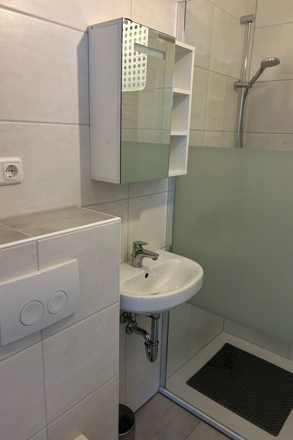 Outside, the accommodation has an inviting terrace with a direct view of the well-tended garden. Here you can enjoy undisturbed hours outdoors, be it with a cup of coffee in the morning or a relaxing evening in a quiet atmosphere. The ground-level location of the flat also allows easy access and underlines the comfort of this holiday home.