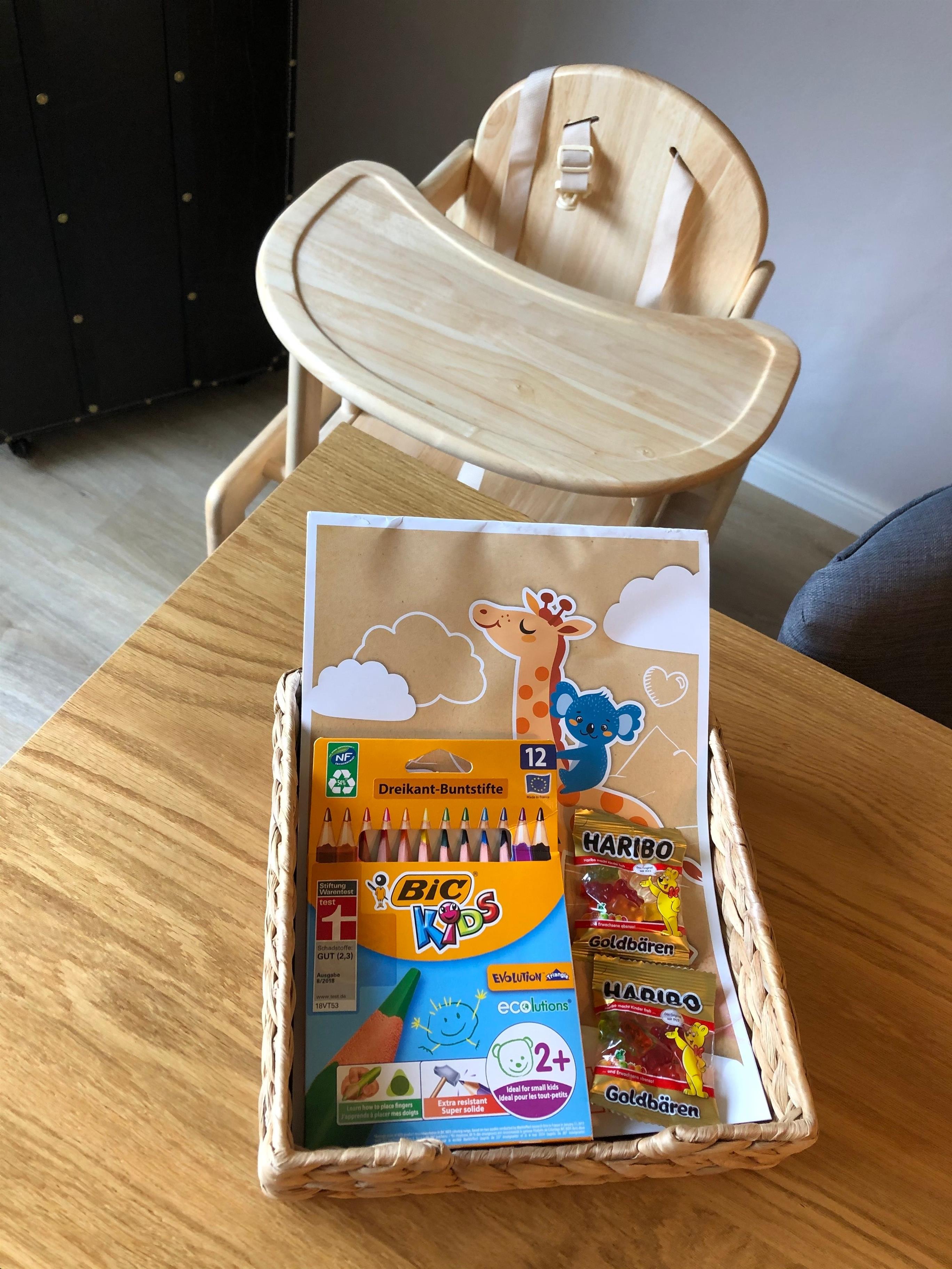 Ein Kinderhochstuhl steht im Erdgeschoss .