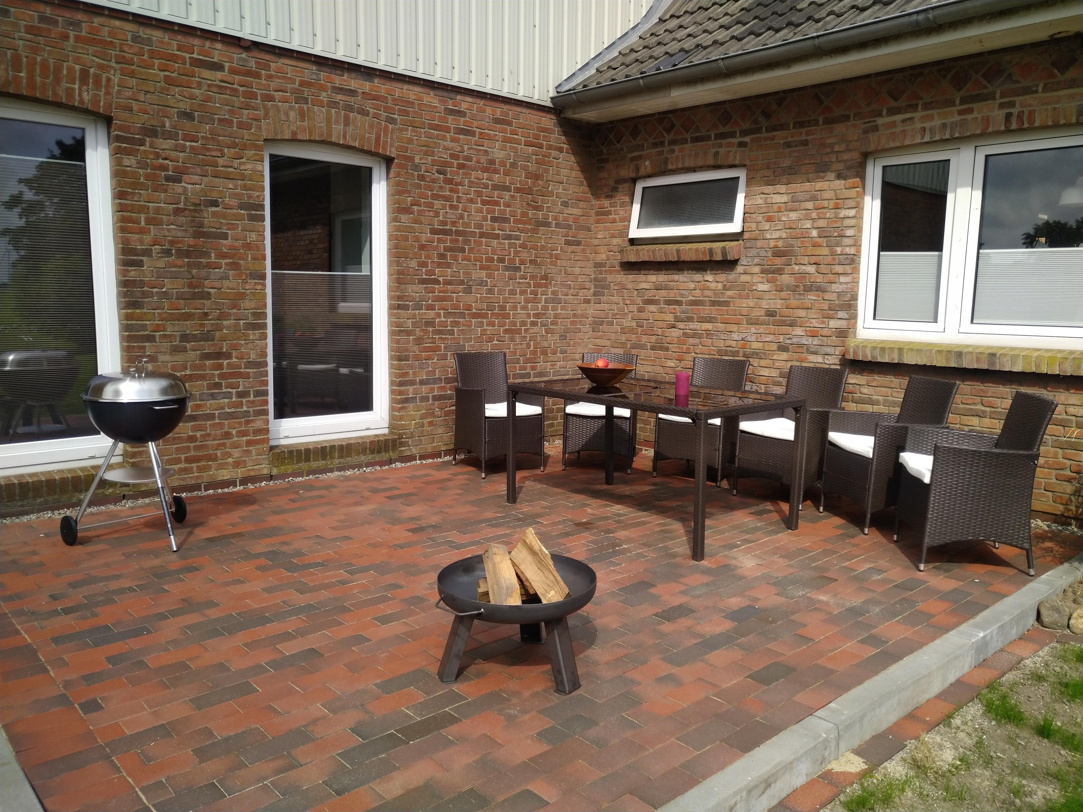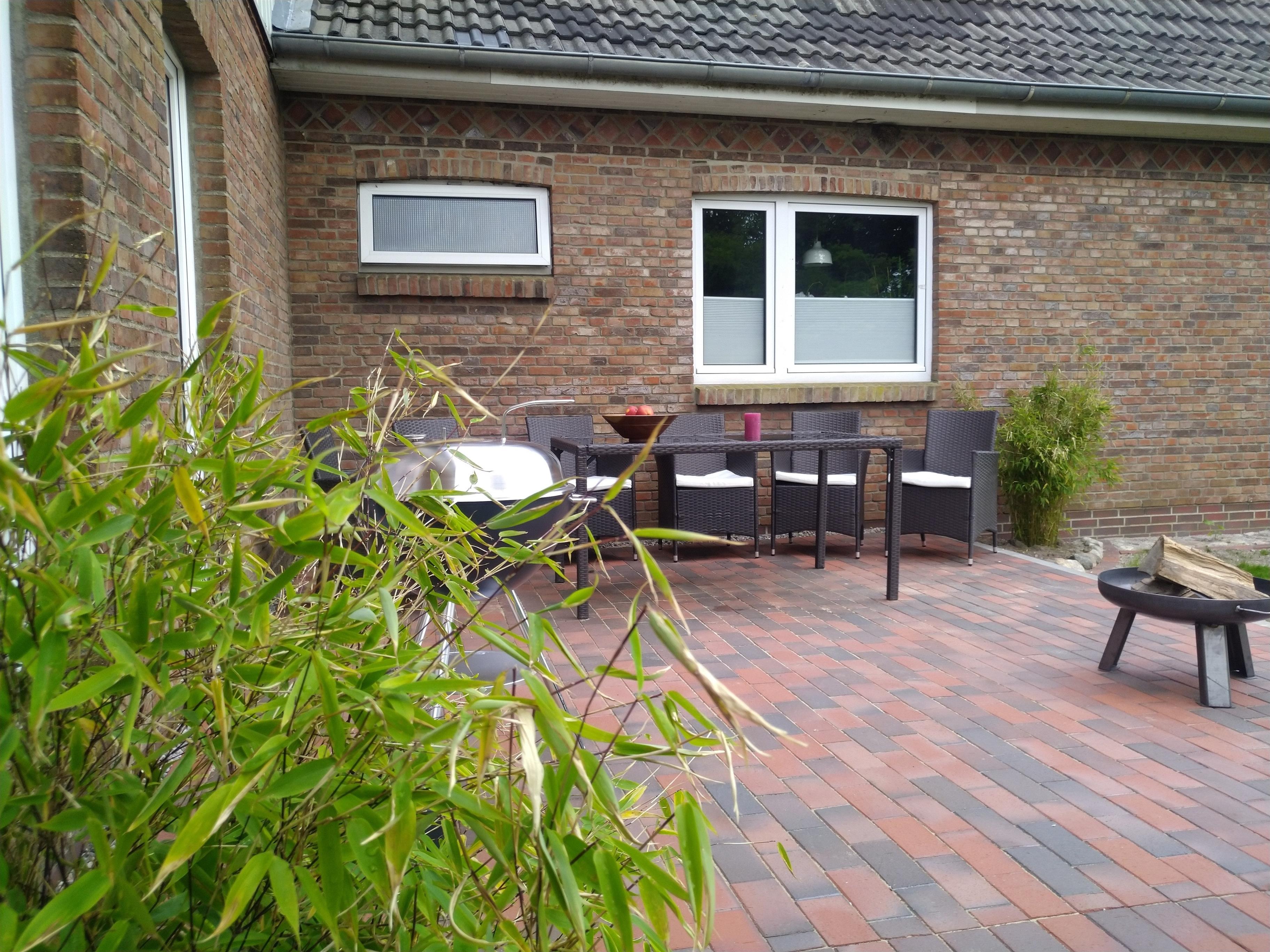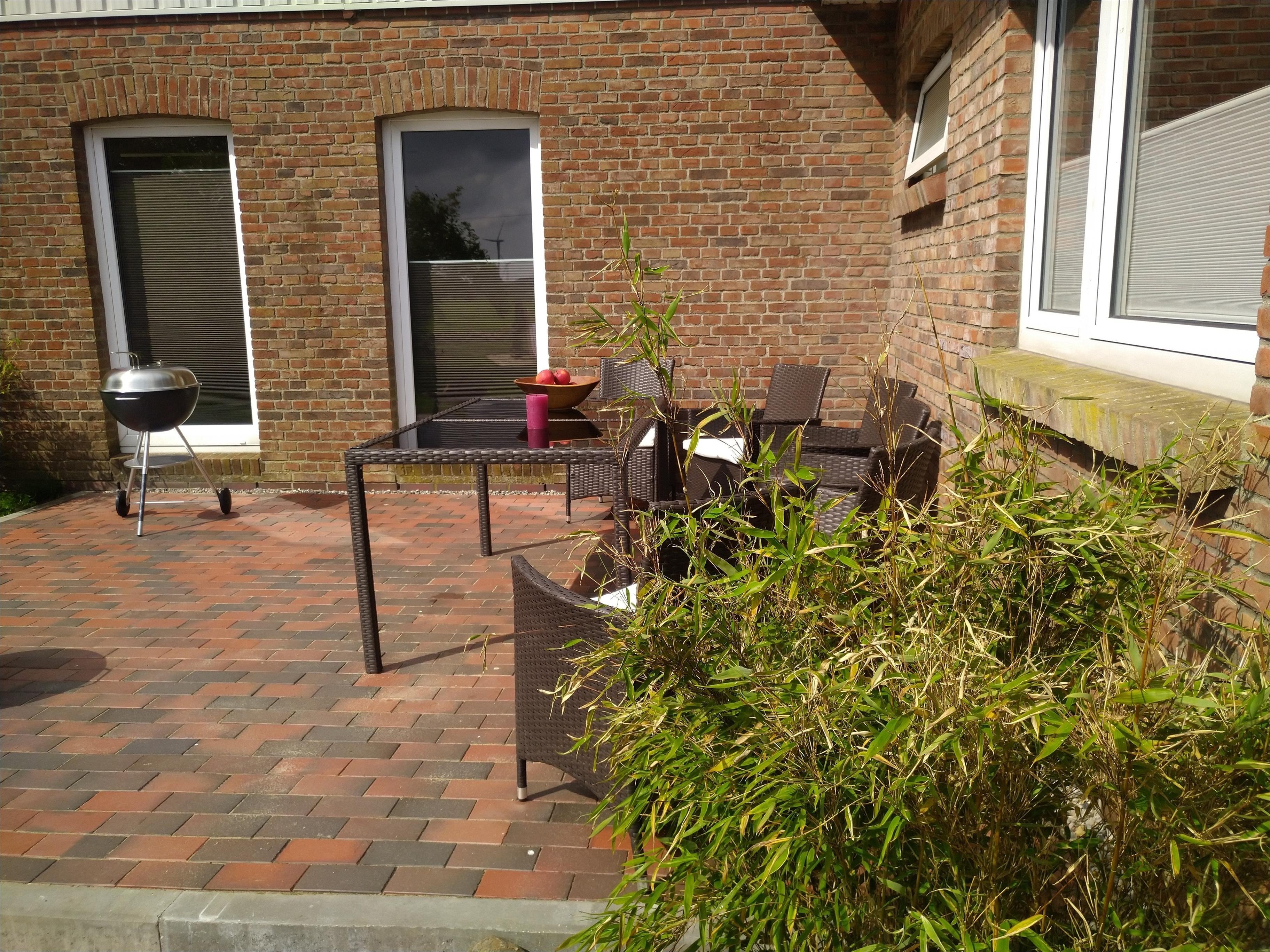 Auf einer Sonnenterrasse stehen für Euch Gartenmöbel und ein Grill zur Verfügung.