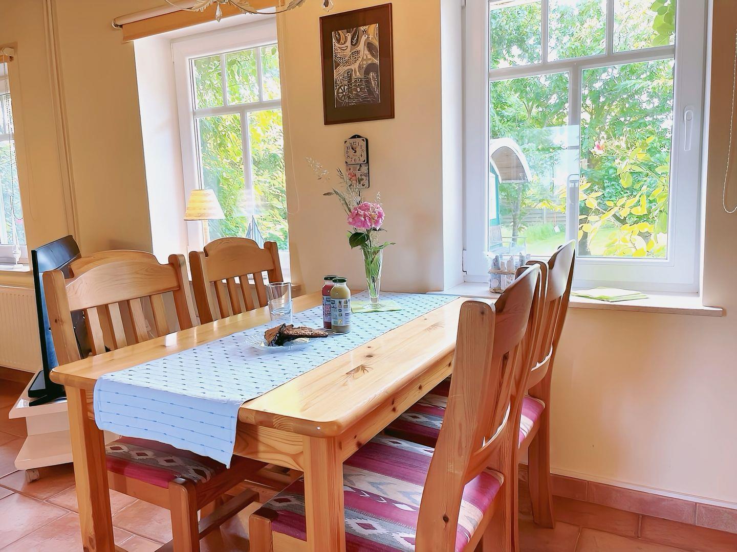 Das Haus erstreckt sich über zwei Etagen und zeichnet sich durch eine helle, freundliche Atmosphäre aus. In drei liebevoll eingerichteten Schlafzimmern finden Sie erholsame Nächte und viel Platz für Ihre persönlichen Dinge. Der großzügige Wohnbereich mit einer Sofaecke lädt zum Entspannen ein, während die offen gestaltete Küche, ausgestattet mit sämtlichen modernen Annehmlichkeiten wie Spülmaschine, Mikrowelle und Kaffeemaschine, die Zubereitung leckerer Mahlzeiten zum Vergnügen macht. Hier können Sie abends in geselliger Runde zusammenkommen und die Erlebnisse des Tages Revue passieren lassen.
