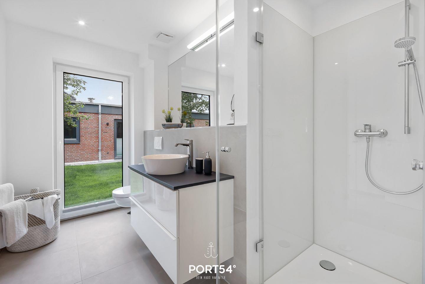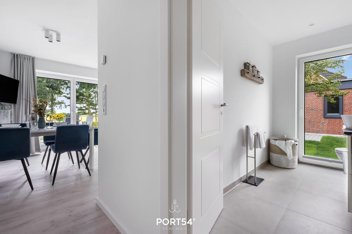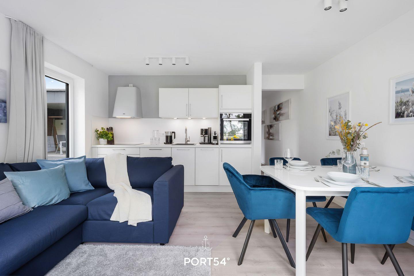 In dem geräumigen Wohnzimmer mit offener Küche können Sie es sich gemütlich machen. Die Küche ist modern und voll ausgestattet, sodass Sie hier wunderbar Kochen können. Auf der angrenzenden Sonnenterrasse mit einem Gemeinschaftsgarten können Sie herrliche Stunden an der frischen Nordseeluft verbringen. Ein Elektrogrill steht Ihnen für gesellige