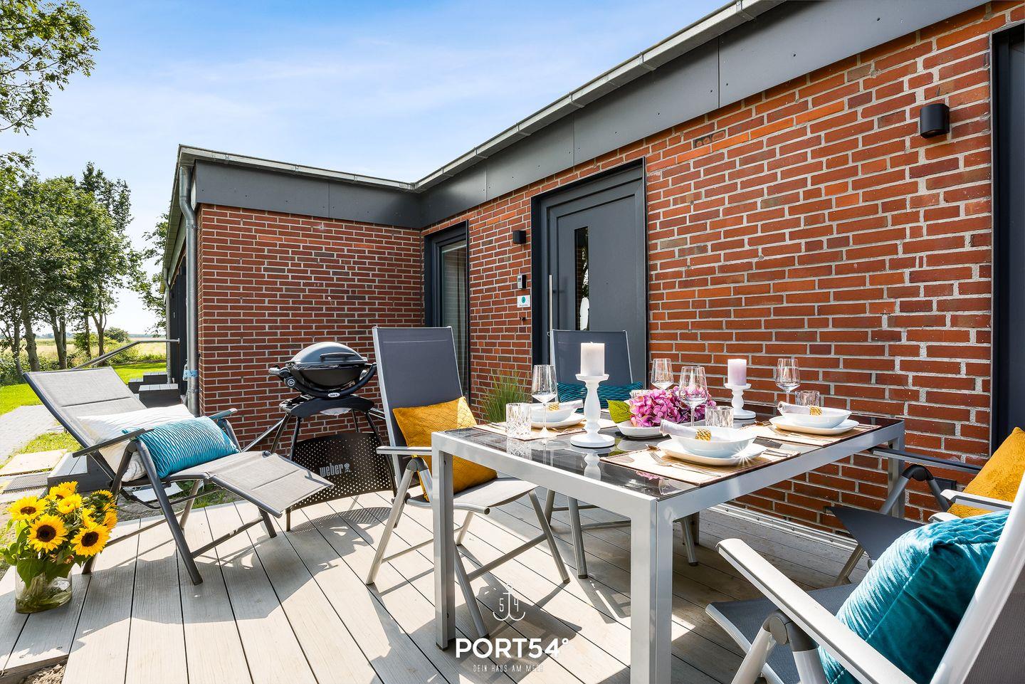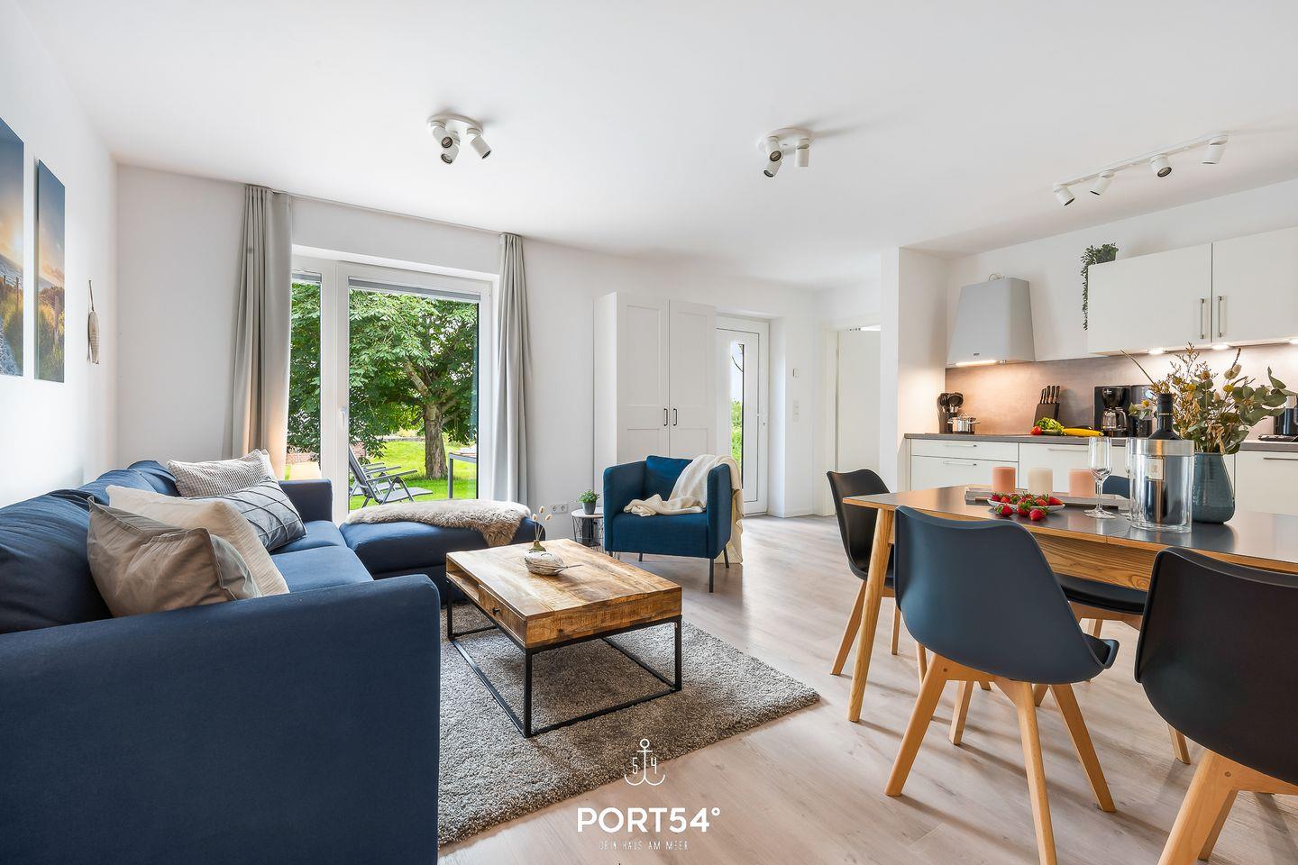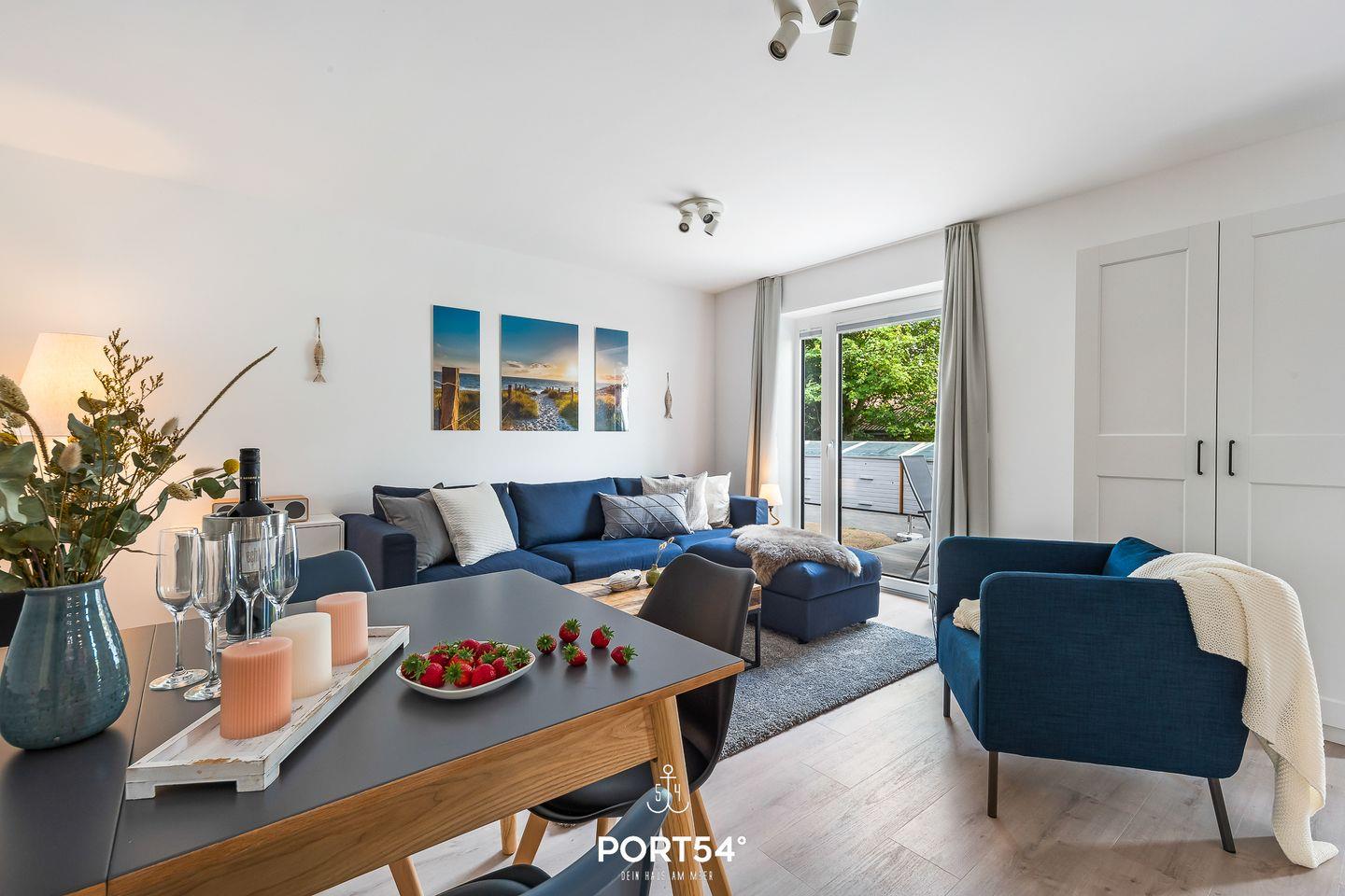 Diese bezaubernde 57m² große, lichtdurchflutete Ferienwohnung in idyllisch ruhiger Lage, bietet Ihnen einen offenen Wohn-/Essbereich mit integrierter voll ausgestatteter Küche, zwei Schlafzimmer, eines mit einem Doppelbett & eines mit einem Etagenbett ausgestattet. Außerdem bietet die Wohnung ein helles Duschbad & ein Schlafsofa, dass weitere Schlafmöglichkeiten bietet. Auf der Sonnenterrasse mit angrenzendem Garten können Sie herrliche Stunden an der frischen Nordseeluft verbringen.