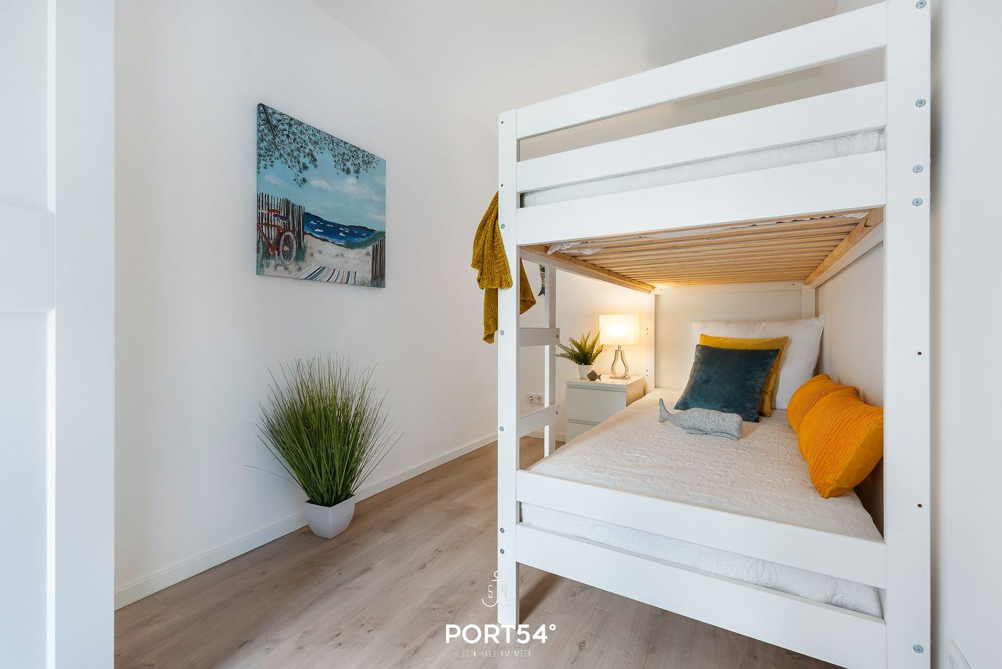 In dem geräumigen Wohnzimmer mit offener Küche können Sie es sich gemütlich machen. Die Küche ist modern und voll ausgestattet, sodass Sie hier wunderbar kochen können. Auf der angrenzenden Sonnenterrasse können Sie herrliche Stunden an der frischen Nordseeluft verbringen. Für gesellige Grillabende steht ein Elektrogrill zu Ihrer Verfügung. Die beiden Schlafzimmer sind hochwertig eingerichtet. Das eine Zimmer verfügt über ein Doppelbett (180x200cm), das andere über ein Etagenbett (90x200cm). Für weitere 2 Personen steht im Wohnzimmer ein gemütliches Schlafsofa zur Verfügung. Das helle Badezimmer hat eine Dusche. Die gesamte Wohnung verfügt über eine Fußbodenheizung.