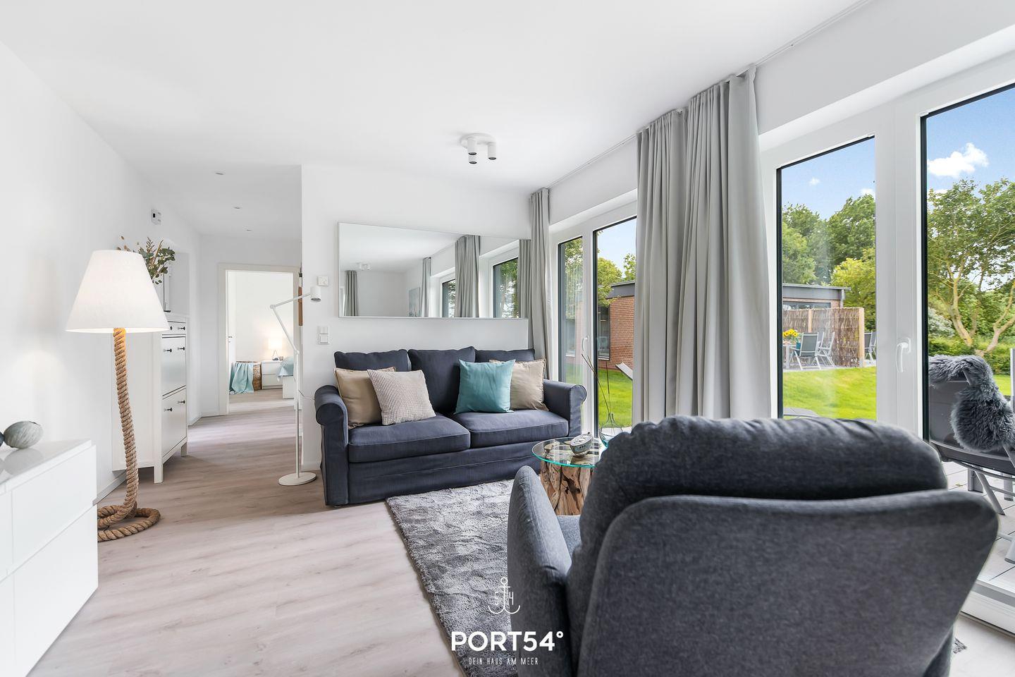 Diese bezaubernde 49m² große, lichtdurchflutete Ferienwohnung in idyllisch ruhiger Lage, bietet Ihnen einen offenen Wohn-/Essbereich mit integrierter voll ausgestatteter Küche, ein Schlafzimmer mit einem Doppelbett & ein Badezimmer, das über eine ebenerdige Dusche verfügt. Ein Schlafsofa bietet weitere Schlafmöglichkeiten. Das absolute Highlight: Eine Sonnenterrasse mit Elektrogrill und einem Gemeinschaftsgarten, hier können Sie herrliche Stunden an der frischen Nordseeluft verbringen.