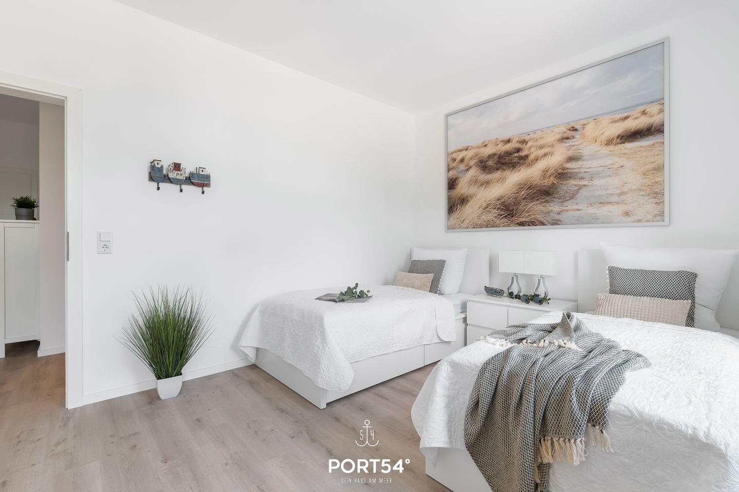 In dem geräumigen Wohnzimmer mit offener Küche können Sie es sich gemütlich machen. Die Küche ist modern und voll ausgestattet, sodass Sie hier wunderbar kochen können. Die beiden Schlafzimmer sind hochwertig eingerichtet. Eines der Zimmer verfügt über ein Doppelbett (180x200cm), das andere über 2 Einzelbetten (90x200cm). Für weitere 2 Personen steht im Wohnzimmer ein gemütliches Schlafsofa zur Verfügung. Das helle Badezimmer hat eine Dusche. Auf dem angrenzenden Balkon können Sie herrliche Stunden an der frischen Nordseeluft verbringen. Ein Elektrogrill für gesellige Grillabende steht Ihnen ebenfalls zur Verfügung.