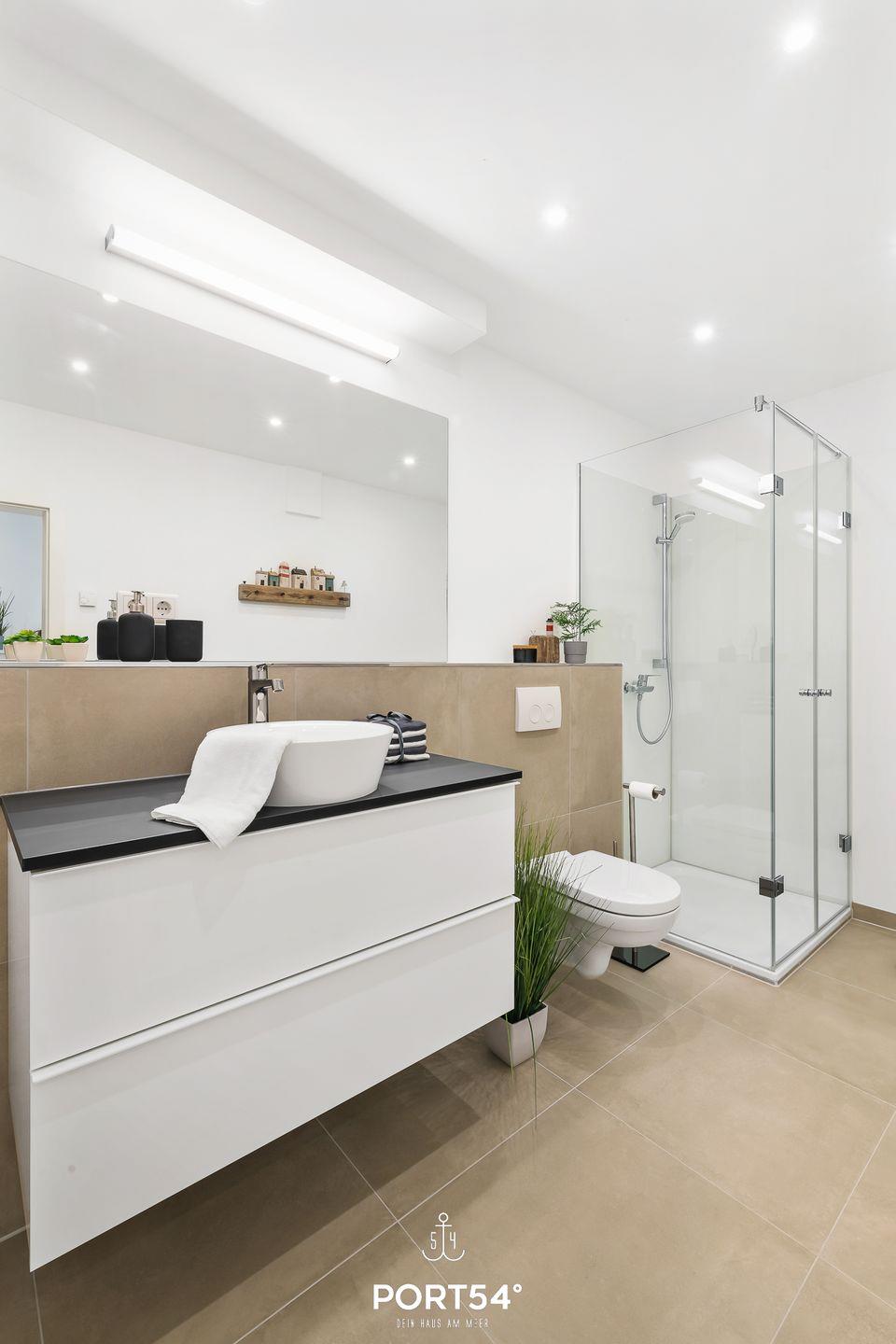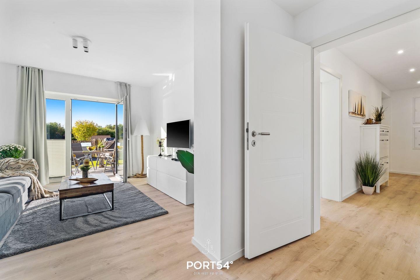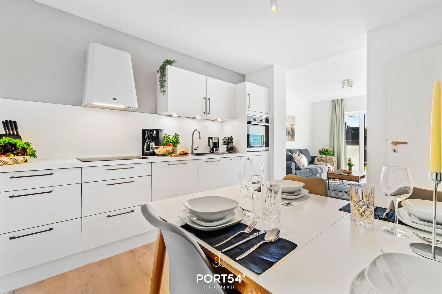 Im geräumigen Wohnzimmer können Sie es sich gemütlich machen. Die Küche ist modern und voll ausgestattet, sodass Sie hier wunderbar gemeinsam kochen können. Das Schlafzimmer ist hochwertig eingerichtet und verfügt über ein Doppelbett (180x200cm). Für weitere 2 Personen steht im Wohnzimmer ein gemütliches Schlafsofa zur Verfügung. Das helle Duschbad ist, wie die gesamte Wohnung, mit einer Fußbodenheizung ausgestattet und bietet Ihnen zusätzlichen Komfort. Auf der Sonnenterrasse mit einem Gemeinschaftsgarten können Sie herrliche Stunden an der frischen Nordseeluft verbringen. Für gesellige Grillabende steht Ihnen ein Elektrogrill zur Verfügung.