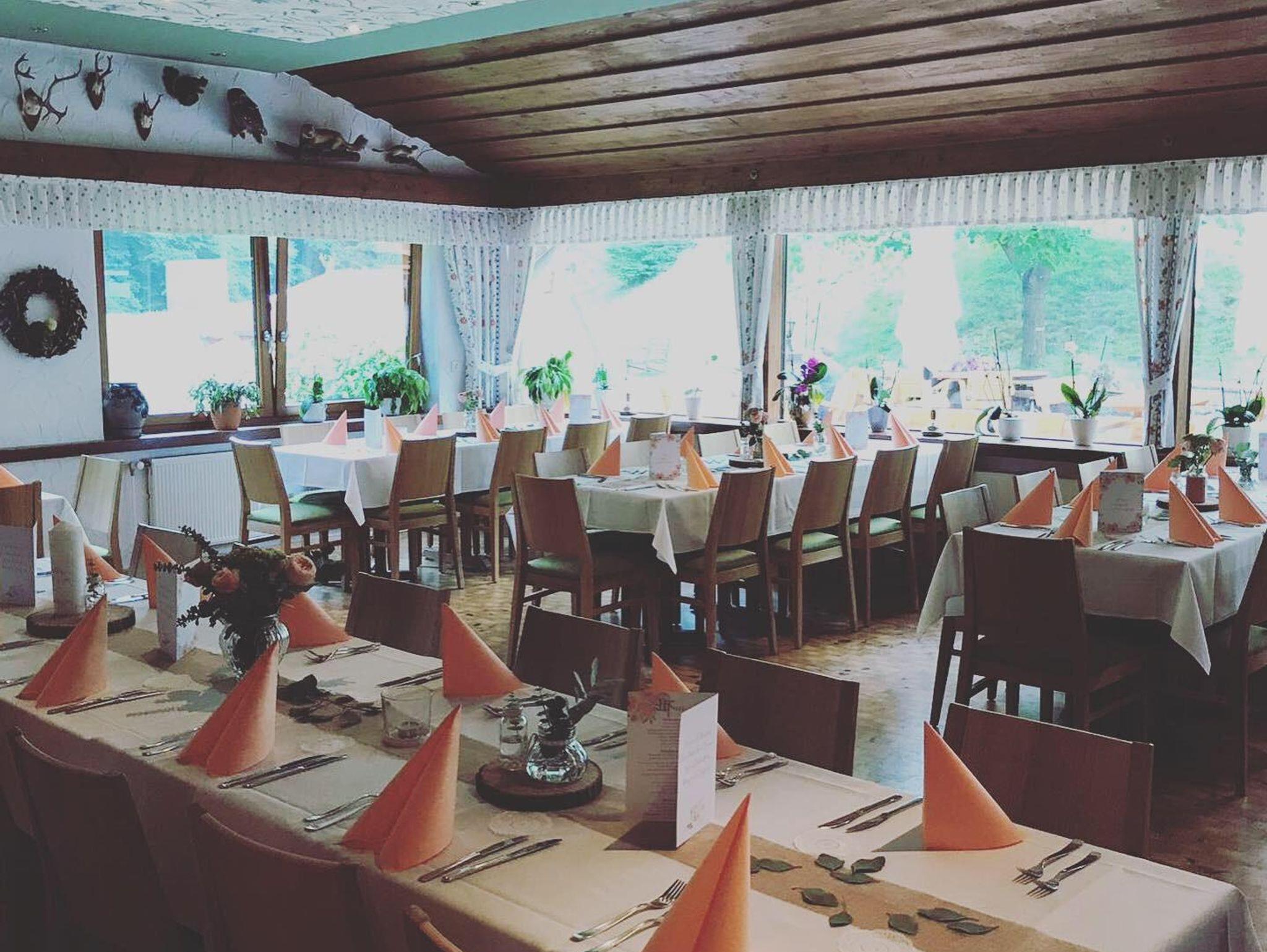 Neue, gemütlich eingerichtete Zimmer und Ferienwohnungen in ruhiger und familiärer Atmosphäre. Mitten im Wald gelegen mit Spielplatz, fernab von Lärm und Straßenverkehr. Überall liegt ein Hauch von Abenteuer. Es wird Ihnen bei uns gut schmecken, dass macht die frische Luft und die gute Küche aus. Wir bieten Ihnen ÜF oder Essen in unserem à la carte-Restaurant an, sowie Brötchenservice.