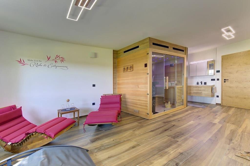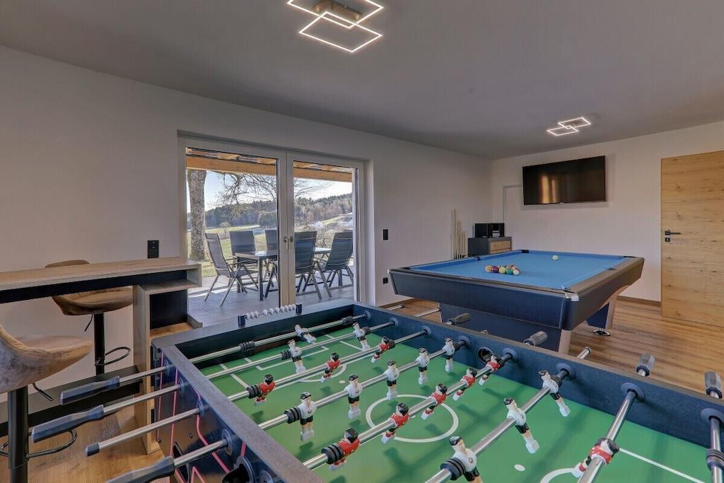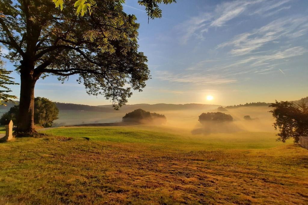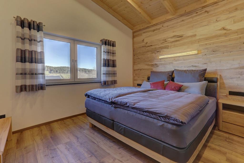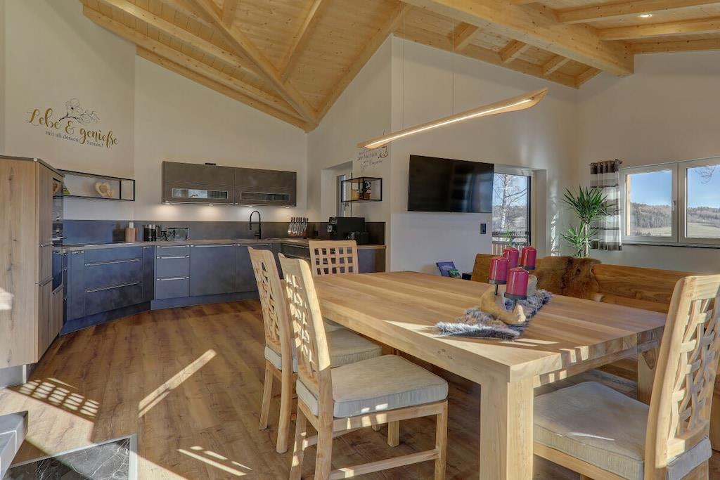 • The Rachelblick country house is a modern and luxuriously furnished holiday home in the Bavarian Forest, accommodating up to 6 people. Spread over two floors, it offers a wonderful place to relax and escape the hustle and bustle of everyday life. For a touch of wellness during your holiday, enjoy the private Finnish sauna with relaxation room and the whirlpool on the terrace, which boasts beautiful views of the meadows and forests of the Bavarian Forest. • Find out here what else awaits you during a holiday in our chalet. We look forward to welcoming you!