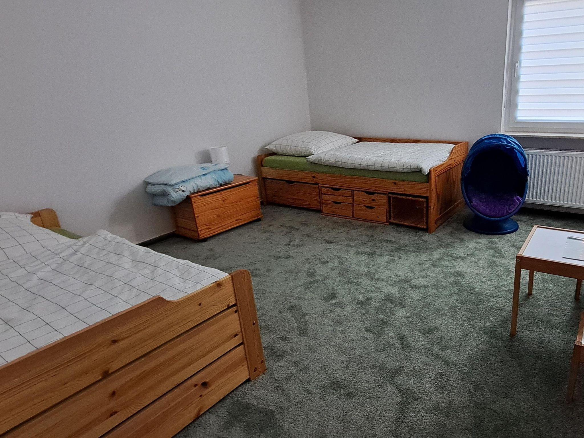 Die neu eingerichtete 75m² große Wohnung eignet sich ideal für Familien mit Kindern und verfügt über ein geräumiges Schlafzimmer mit einem Doppelbett sowie ein weiteres Schlafzimmer mit zwei Einzelbetten, beide mit Teppichboden. Zusätzlich gibt es ein großes Wohnzimmer, das mit einer Couch, einer Essecke und einem Flachbildfernseher mit Kabelanschluss ausgestattet ist.