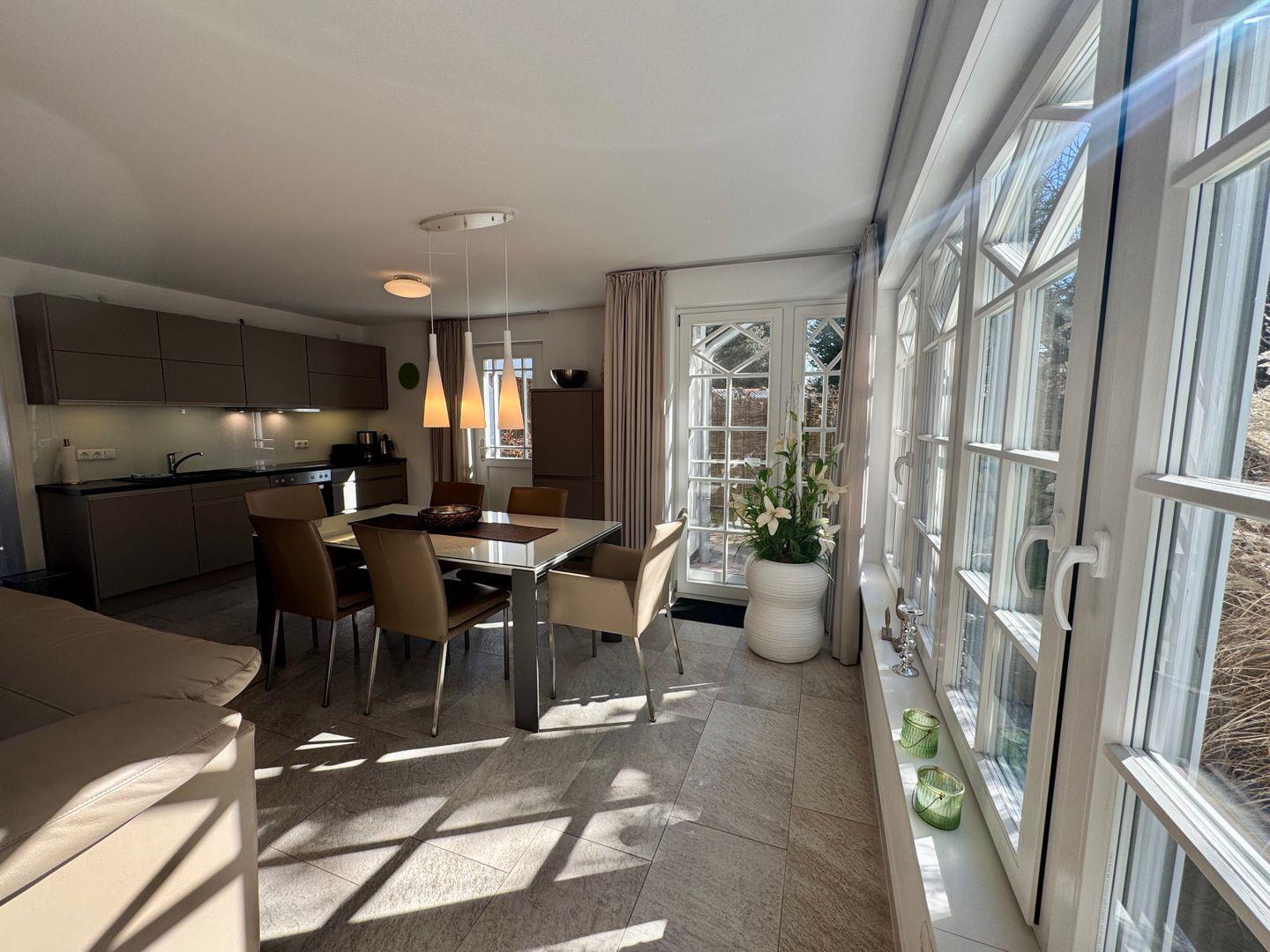 Ein geräumiges Ferienhaus mit Terrasse nach Süd/Westen, einem Garten mit Holzkohlegrill und einem Balkon mit Blick auf den Wald, ideal für maximal 6 Personen. Im Erdgeschoss erwartet Sie ein gemütliches Wohnzimmer mit Kamin, einer voll ausgestatteten Küchenzeile und einem Essbereich für gesellige Mahlzeiten. Ein Badezimmer mit Dusche/WC, Waschmaschine und Sauna sorgen für zusätzlichen Komfort. Im Obergeschoss befinden sich zwei Schlafzimmer mit Doppelbetten sowie ein weiteres Schlafzimmer mit einem ausziehbaren Bett (1,60 x 2,00 m). Ein weiteres Badezimmer mit Dusche und WC steht ebenfalls zur Verfügung. Im Dachgeschoss finden Sie ein Sofa und ein Klavier für entspannte Momente. Maximal ein Haustier ist gestattet und Rauchen im Haus ist nicht erlaubt. WLAN und Fußbodenheizung sind vorhanden, um Ihnen einen angenehmen Aufenthalt zu bieten. Auf dem Grundstück stehen Ihnen zwei Parkplätze zur Verfügung, und eine E-Ladestation kann auf Anfrage genutzt werden. Ein abschließbarer Fahrradschuppen ist ebenfalls vorhanden.