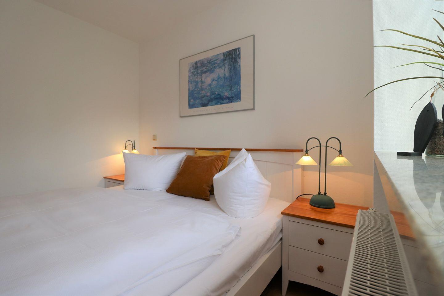 Der Balkon mit Süd-West-Ausrichtung ist ein weiteres Highlight. Hier können Sie den traumhaften Blick auf den Bodden genießen – sei es im Strandkorb oder auf der einladenden Sitzgruppe. Im Schlafzimmer sorgt ein komfortables Doppelbett für erholsamen Schlaf. Zusätzlich steht ein Zustellbett für eine dritte Person zur Verfügung, sodass auch Familien oder kleine Gruppen bequem Platz finden. Das Bad ist mit einer modernen Dusche und einem WC ausgestattet. Eine Waschmaschine steht Ihnen ebenfalls zur Verfügung, um Ihre Wäsche bequem zu waschen. Haustiere sind in diesem Appartement herzlich willkommen, sodass auch Ihr vierbeiniger Begleiter den Urlaub genießen kann. Das Rauchen ist jedoch im gesamten Appartement nicht gestattet. Leider steht in diesem Appartement kein W-LAN zur Verfügung. Ein Pkw-Stellplatz (Nr. 11) befindet sich direkt auf dem Grundstück der Ferienanlage.