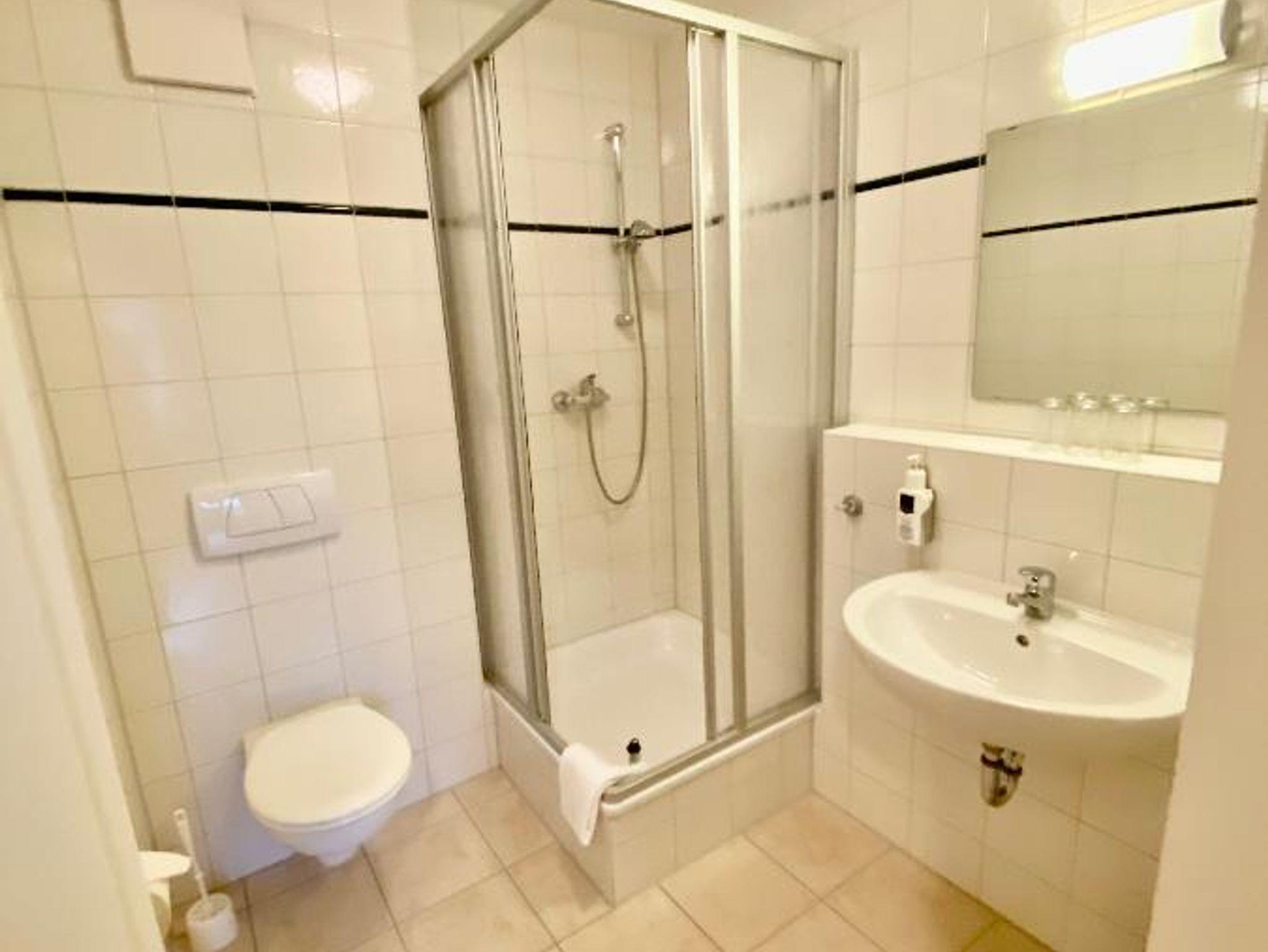 Die Dusche verfügt über einen Duschgelspender und Handtuchgarnitur p.P.