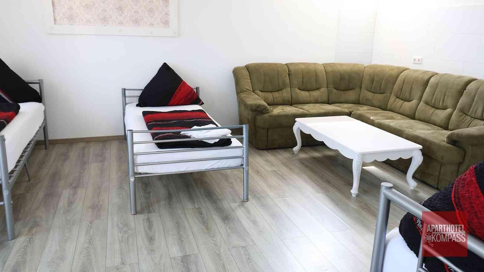 Appartment für 2 (max. 4) Personen, Wohnraum mit integrierter Küche, Schlafraum, Duschbad. WLAN kostenlos verfügbar. Schlafsofa und Zustellbett hinzubuchbar.