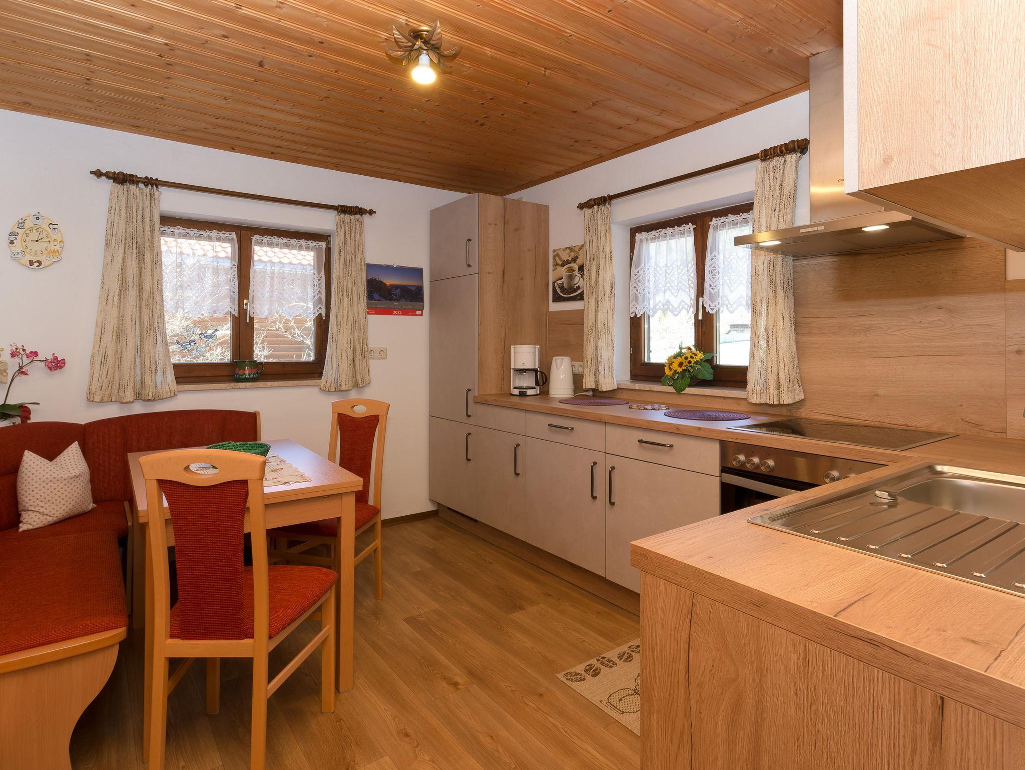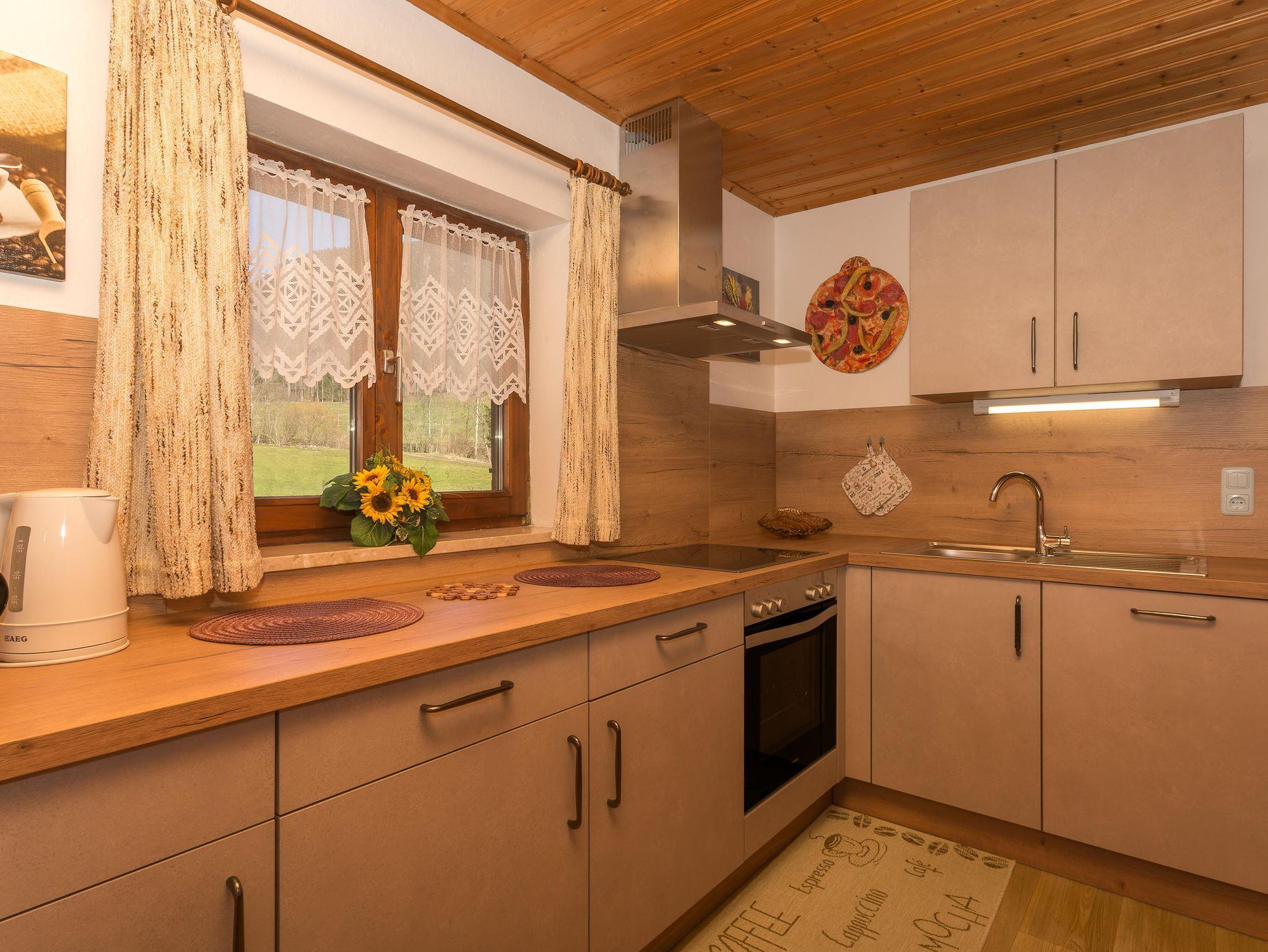 Unsere konfortable Ferienwohnung besteht aus einer modern eingerichteten Küche, einem gemütlichen Wohnraum, sowie ein nach