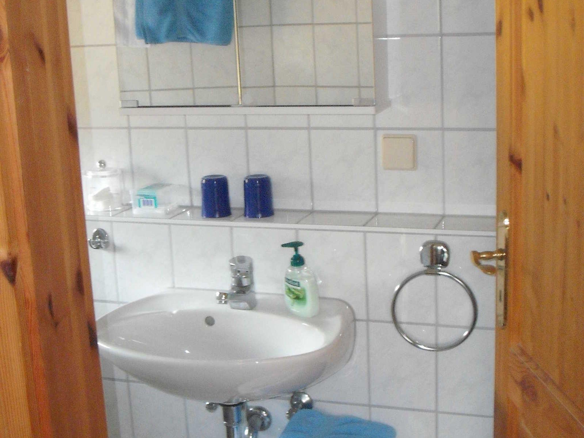 Das Bad ist zwar klein, aber mit allem ausgestattet was man braucht.