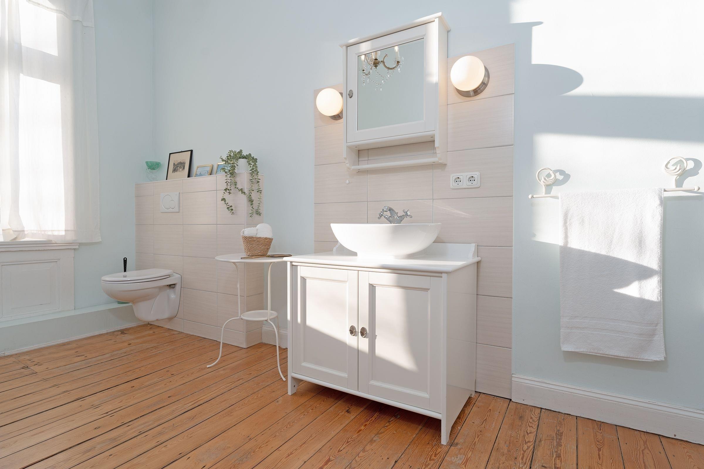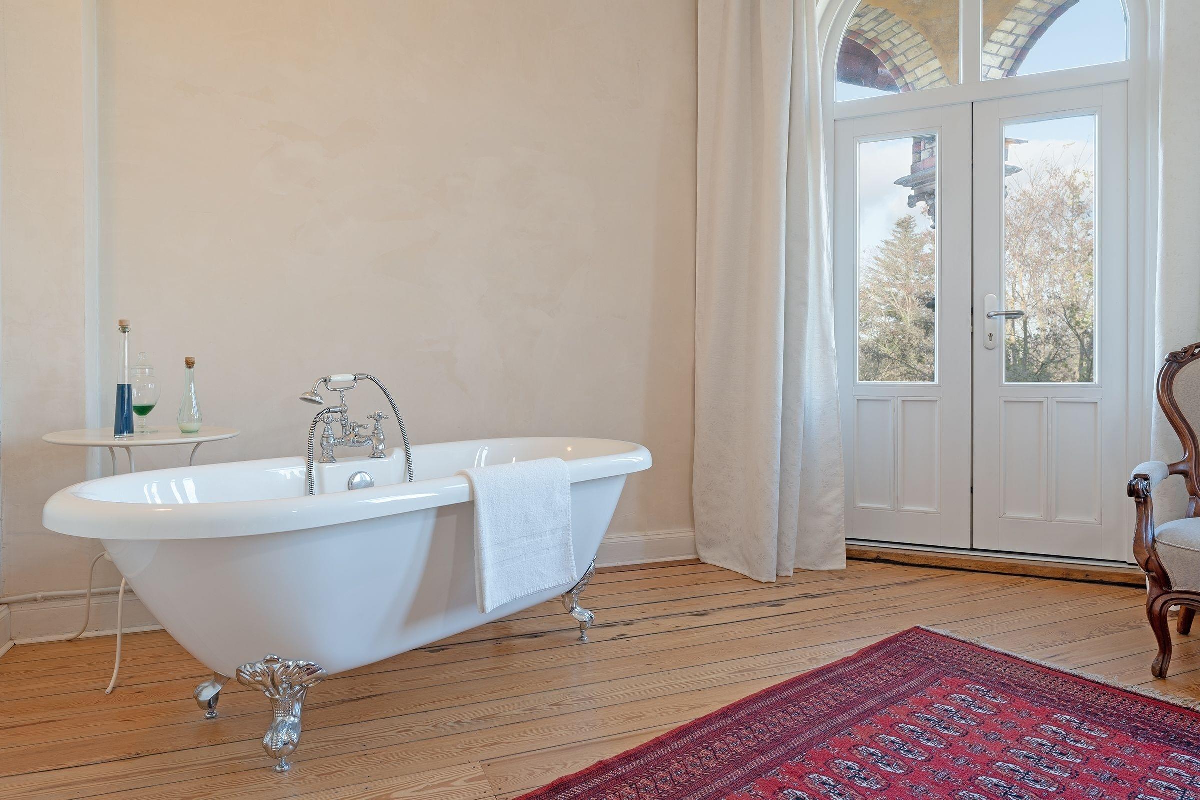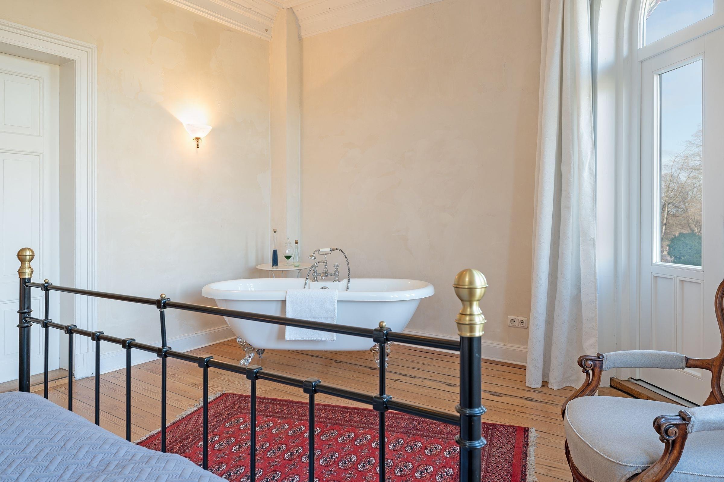 Schlafzimmer 2: Doppelbett (180x200 cm), Kleiderschrank, Badewanne im Zimmer, Verdunkelung: Vorhänge, Platz für Babybett vorhanden