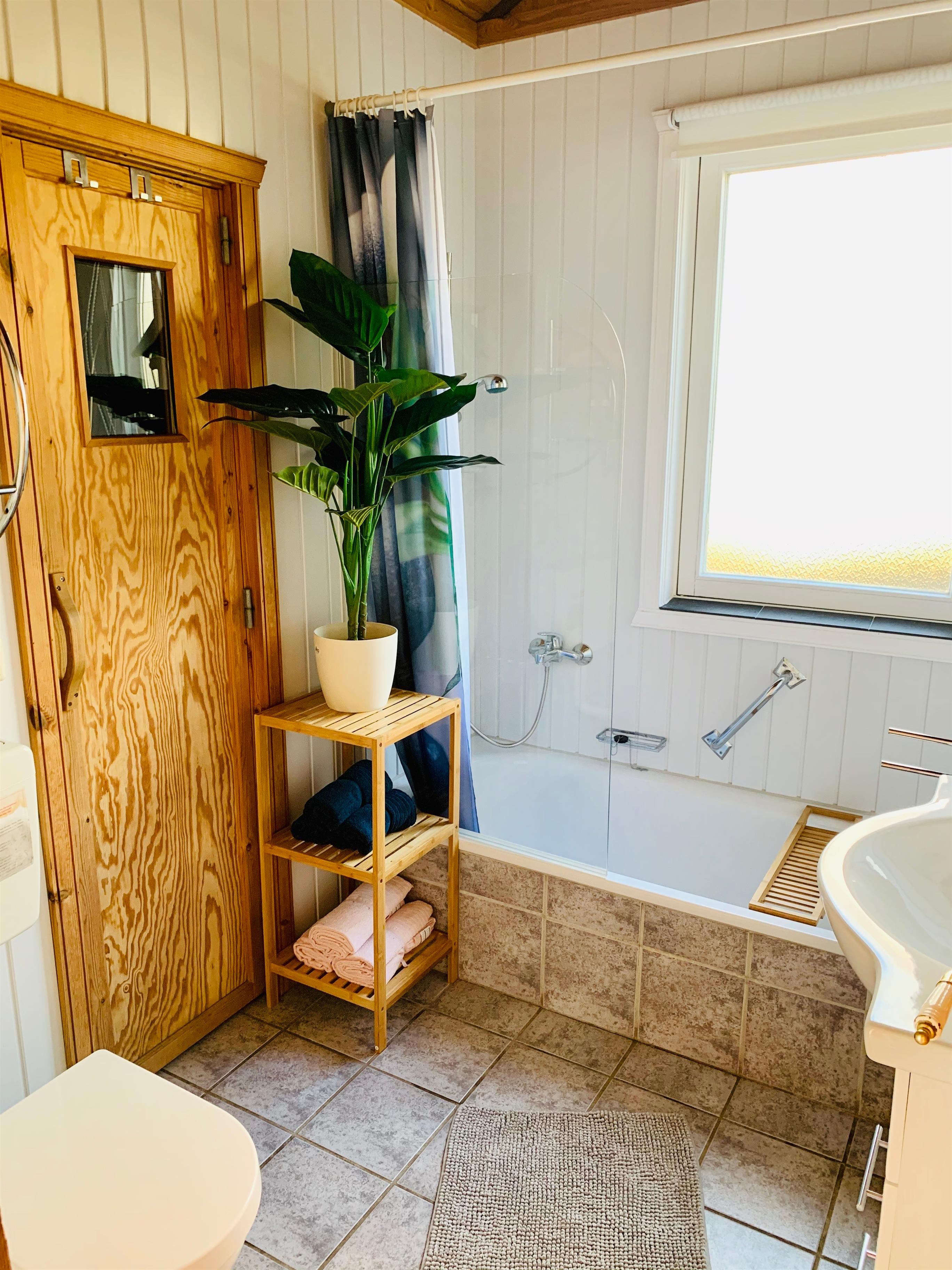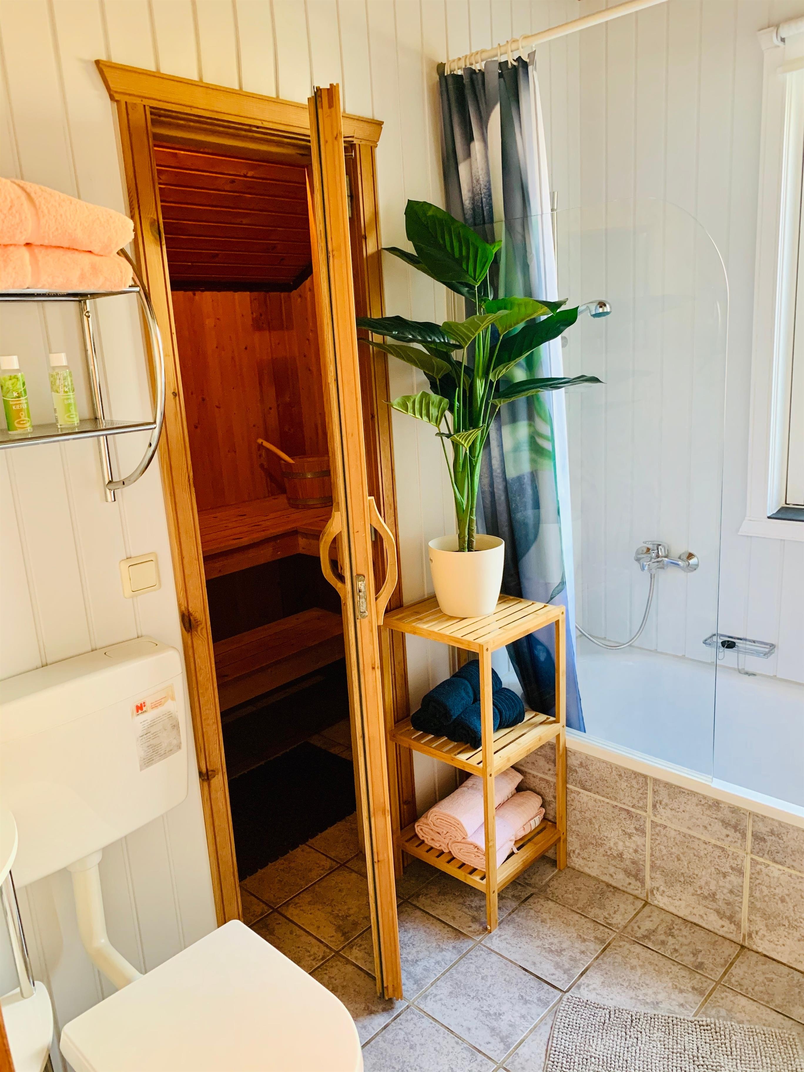 Vom hauseigenen Parkplatz erreichen Sie Ihr Ferienhaus. Dieses ist auf zwei Ebenen mit 3 separaten Schlafzimmern (2x mit Doppelbett, 1x Einzelbett), einem Wohnraum mit offener Küche, einem abgetrennten Flur sowie Badezimmer und Sauna ausgestattet. Den kostenlosen Internetzugang per Wlan können sie in Ihrem Ferienhaus, aber auch auf der Terrasse und Garten jederzeit nutzen. Im Garten und auf der Terrasse können Sie wunderbar entspannen und auch eine Solardusche steht für Sie zur Verfügung.