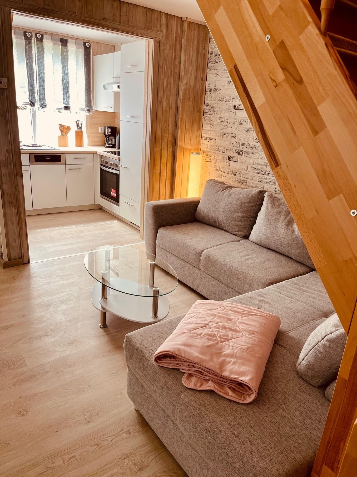 Eine Grundausstattung Brennholz, sowie Anzünder sind bereits im Ferienhaus vorhanden. Die Sitzlandschaft kann als zusätzliche Schlafgelegenheit genutzt werden.