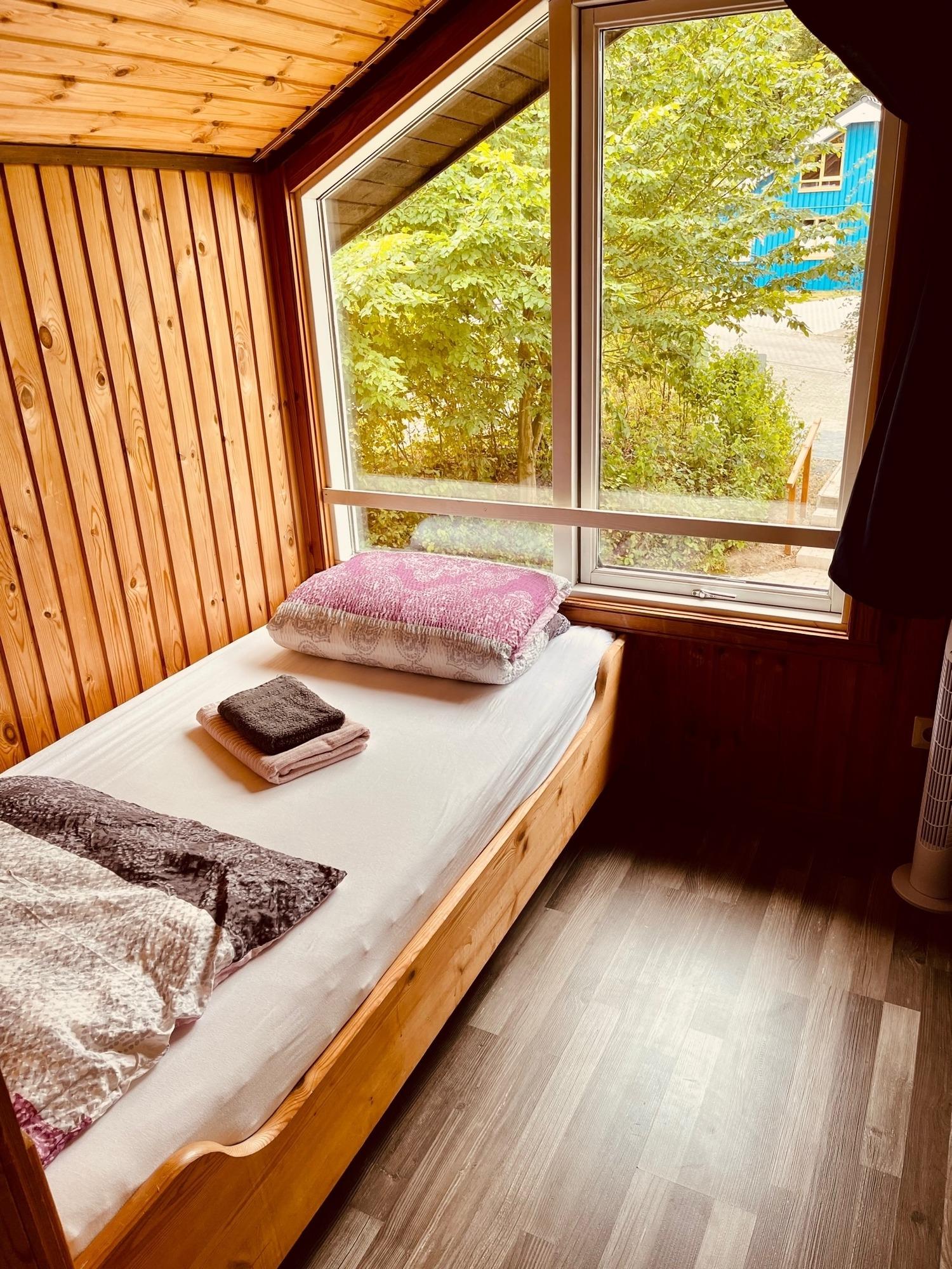 Vom hauseigenen Parkplatz erreichen Sie Ihr Ferienhaus. Dieses ist auf zwei Ebenen mit 3 separaten Schlafzimmern (1x mit Doppelbett, 1x Einzelbett, 1x Schlafsofa für 2 Personen), einem Wohnraum mit offener Küche, einem abgetrennten Flur sowie Badezimmer mit ebenerdiger Dusche ausgestattet. Zudem können Sie in einer privaten Fasssauna entspannen.
