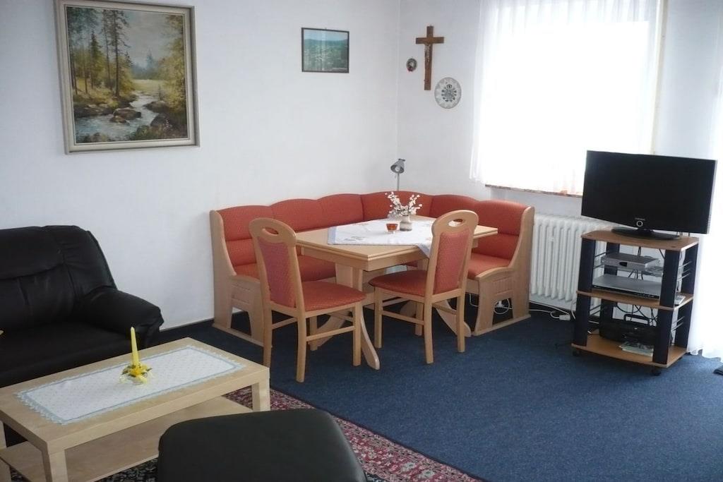 Holiday apartment in the Fichtelgebirge: Quiet on the edge of the forest, hiking, Fichtelsee, Ochsenkopf, relaxation, swimming, active holidays, skiing, cross-country skiing, tobogganing and much more.