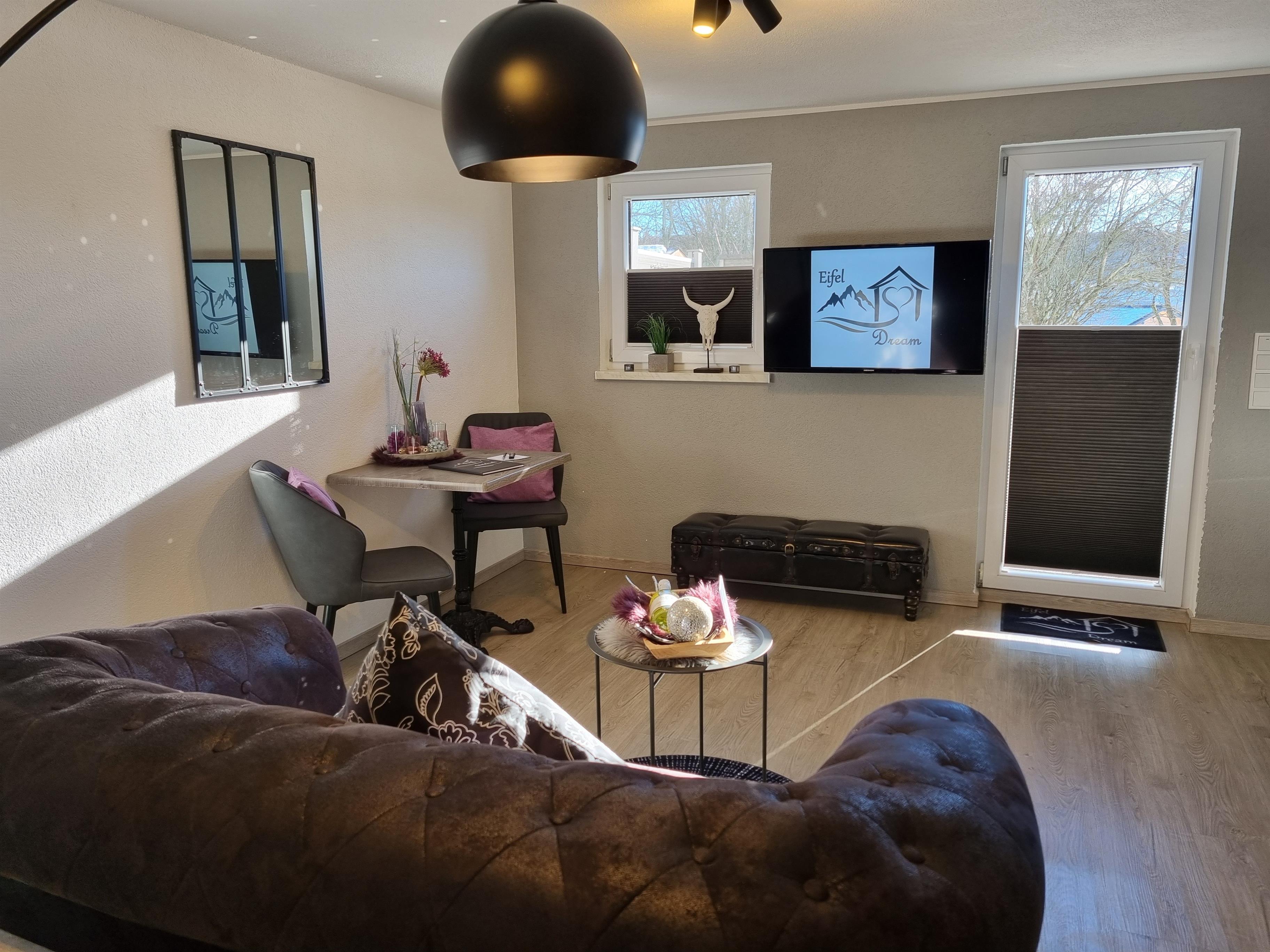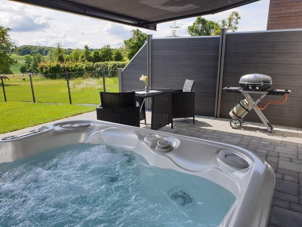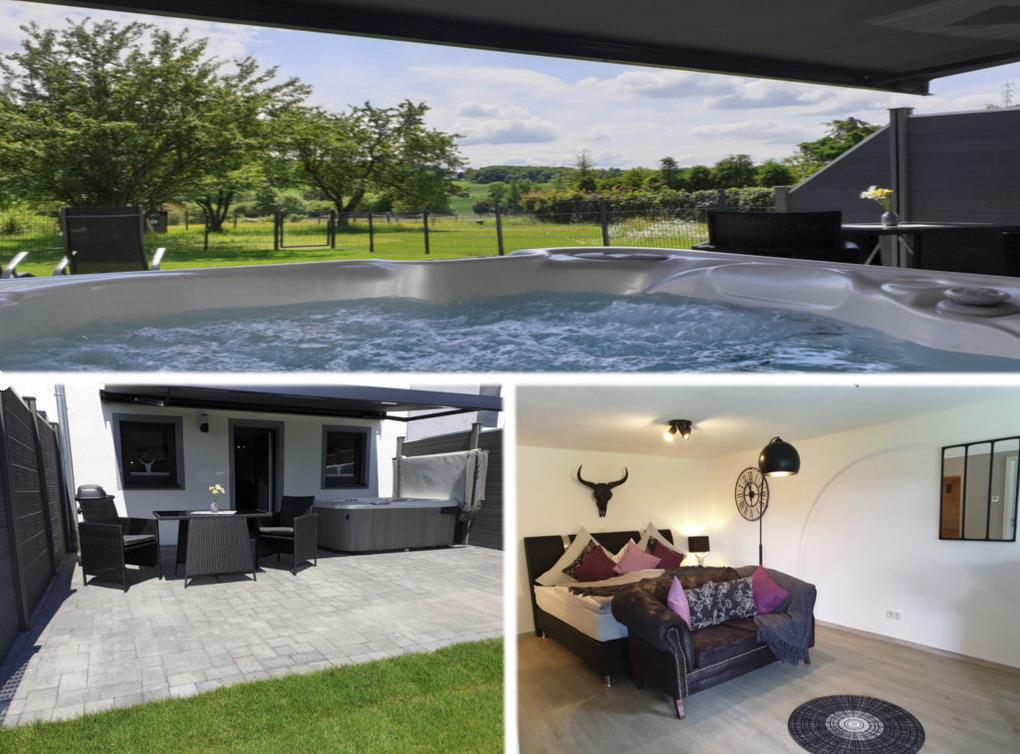 In unserer Ferienwohnung Eifel Dream Kalkmulde erwartet Sie Wellness und Erholung mit Außenwhirlpool / Jacuzzi (365 Tage geheizt) auf der eigenen Terrasse. Eine finnische Sauna sowie der Außenwhirlpool laden zum Entspannen ein. Alle Einrichtungen sind nur für Sie und müssen mit niemandem geteilt werden. Der Garten ist komplett eingezäunt.