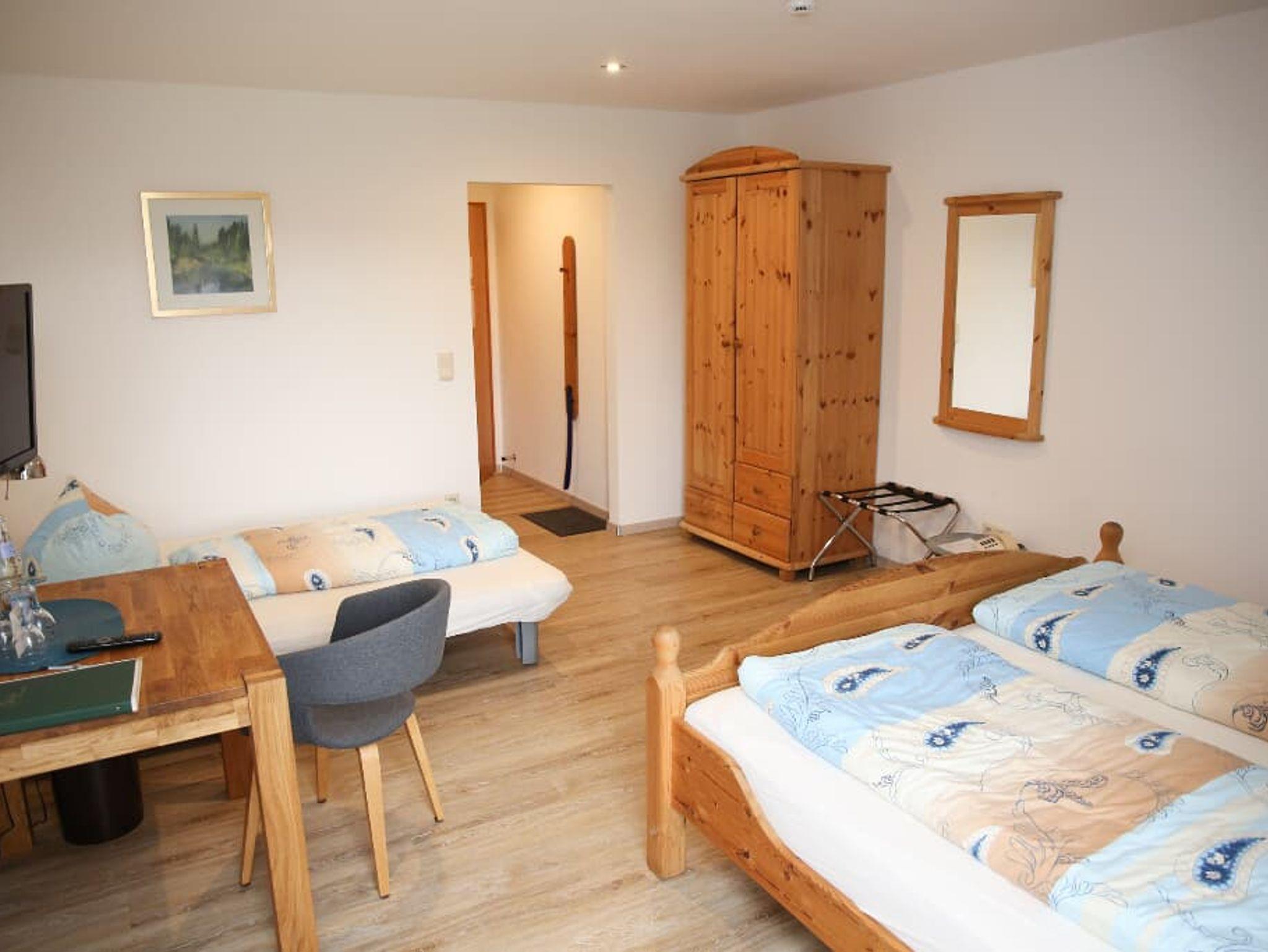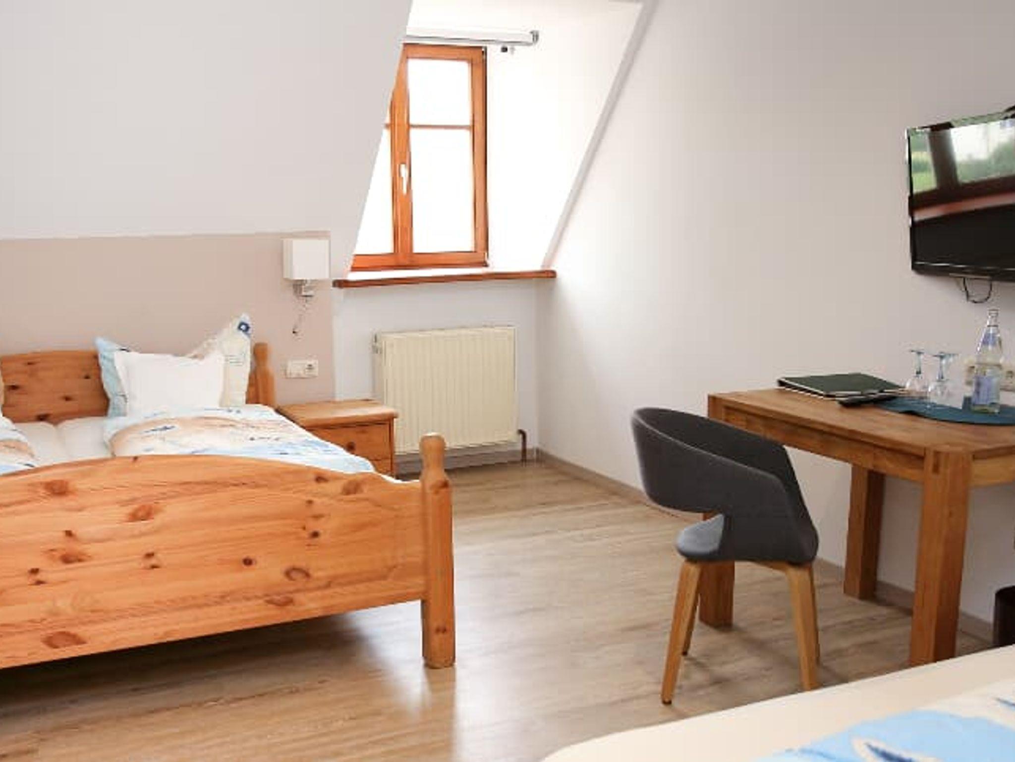 Das im Landhausstil eingerichtete Zimmer bietet auf 24 Quadratmetern Platz für bis zu 3 Personen. Das helle Zimmer ist ausgestattet mit einem Doppelbett und einer Schlafcouch, Schreibtisch, Sitzgelegenheit, Beistelltisch sowie Schrank, Full-HD-LED-TV, Zimmersafe. Das Badezimmer verfügt über Dusche, WC, Waschbecken und Föhn. WLAN und Parkplatz sind im Preis inkludiert.