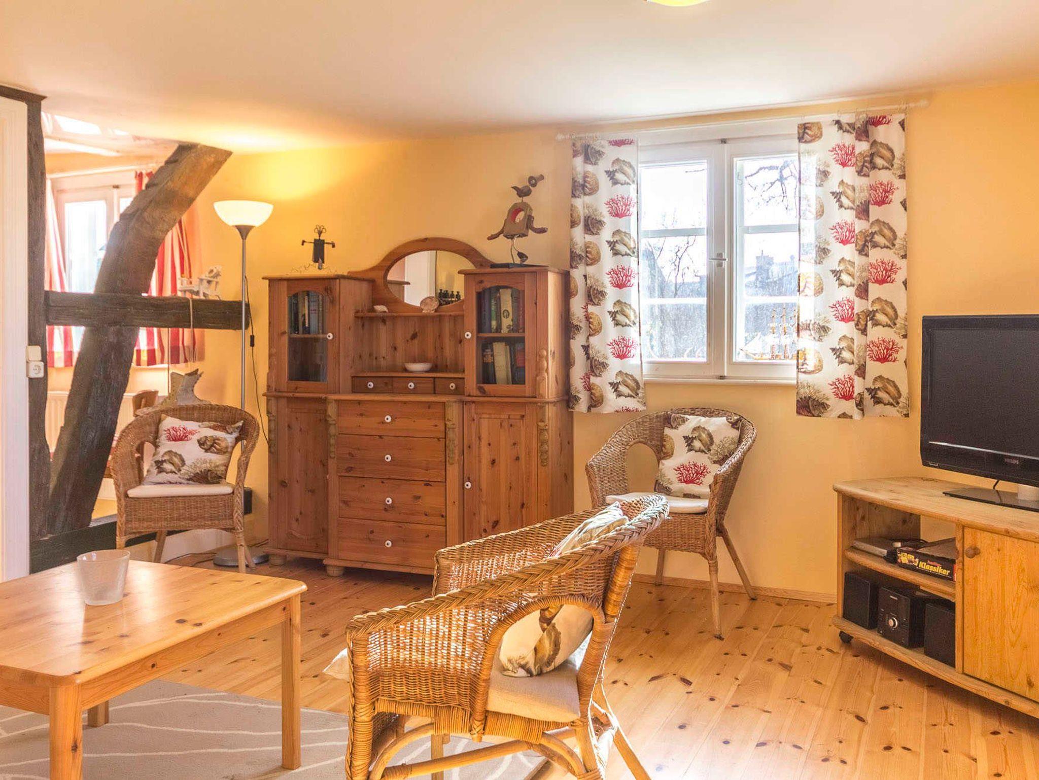 Die „alte Fischerei“, ein historisches Reetdachhaus, mit den 3 Nichtraucher-Ferienwohnungen „Kapitänstube“, „Heimathafen“ und „Fischerkoje“ stammt in Teilen aus dem 17. Jahrhundert und steht unter Denkmalschutz. Sie wurde 1997 kernsaniert und modernisiert. Das zugehörige „Reusenhaus“ konnte nicht gerettet werden und wurde neu aufgebaut. Beide Gebäude sind mit einem Reetdach versehen, eine ortstypische Dacheindeckung.
