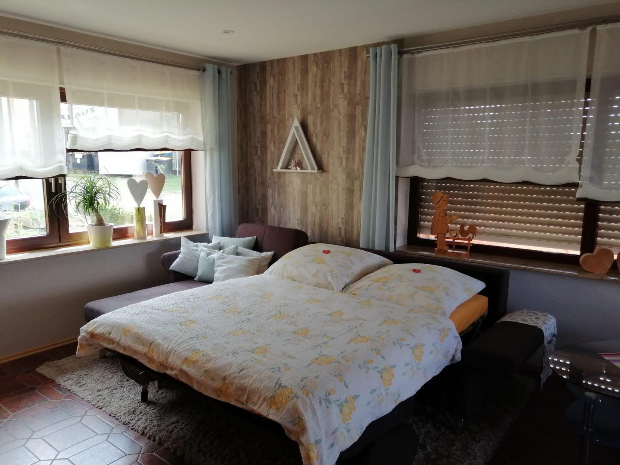 Unser Ferienhaus mit 2 modern eingerichteten, ca. 80m² großen Ferienwohnungen für 2- 4 Personen befindet sich in zweiter Reihe und somit in ruhiger Lage, perfekt um die herrliche Aussicht auf umliegende Wiesen & Wälder zu genießen. Zu finden in einem kleinen Dorf im Hunsrück, 4Km entfernt von der Burgstadt Kastellaun. Innerhalb von 10 Min erreichen sie mit dem Fahrrad den Schinderhannesradweg, mit dem Auto einige zertifizierte Wanderwege, Schwimmbad, Kletterpark, den Beller Tierpark oder in 15 Min. auch die bekannte Hängeseilbrücke Geierlay. Zu Rhein oder Mosel fährt man mit dem Auto ca. 25 Min.