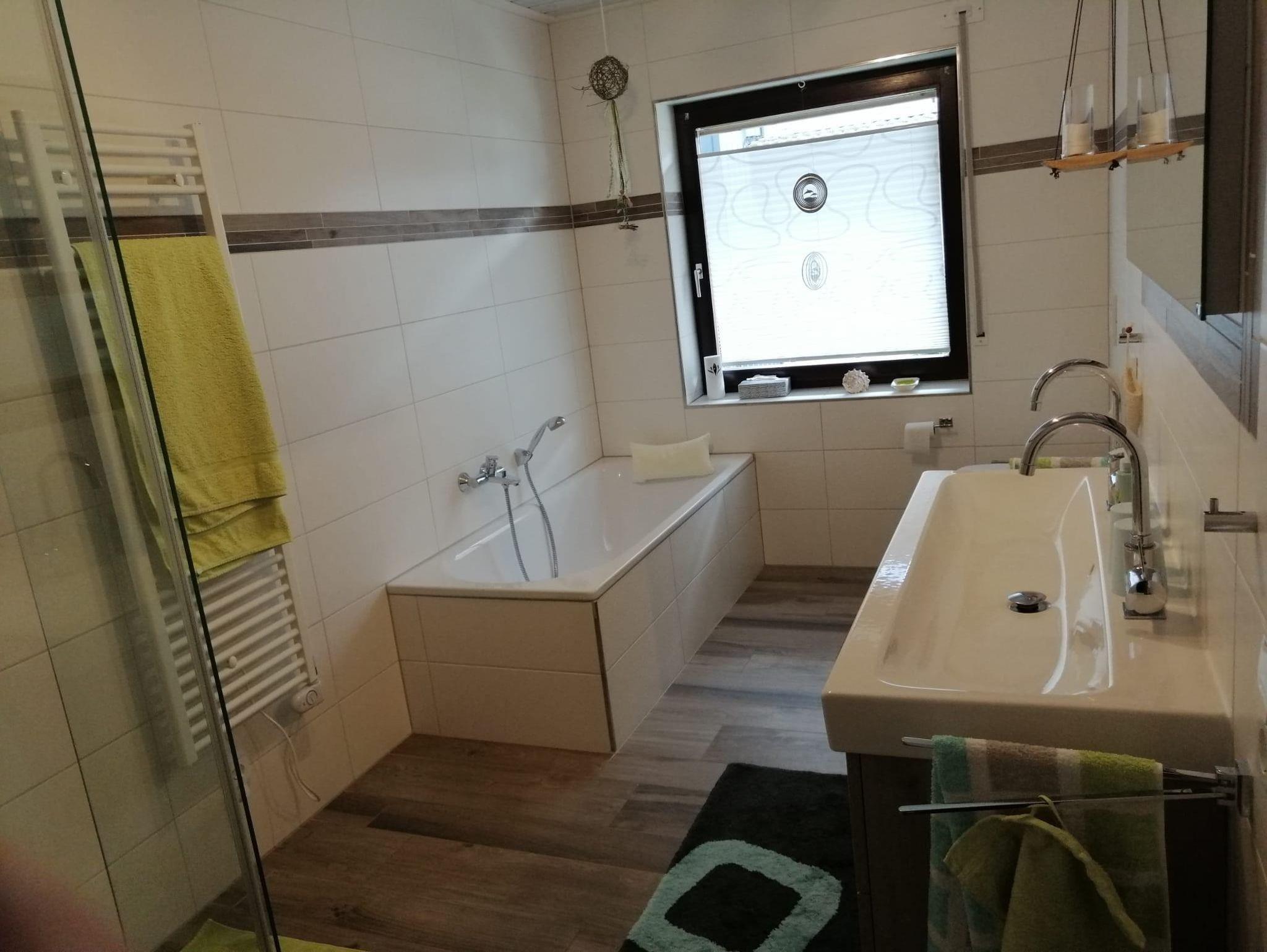 Die Wohnung im Erdgeschoss hat ein Schlafzimmer mit Doppelbett, ein großer & lichtdurchfluteter Wohn-/Essbereich -mit vollwertiger Schlafcouch und umfangreich ausgestatteter Küche incl. Spülmaschine & Mikrowelle. Im modern gestalteten Badezimmer befinden sich eine Dusche sowie eine Badewanne.