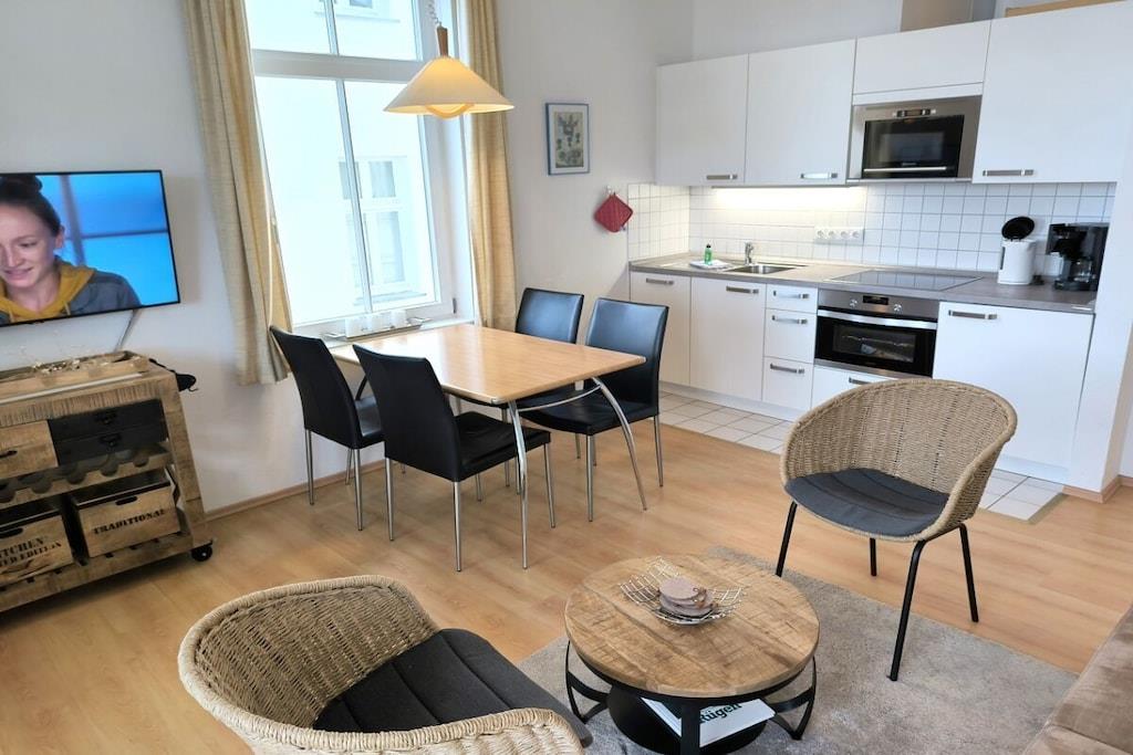 Villa Heimkehr is located not far from the forest promenade above the beach, on a quiet side street. The house was built around 1900 and lovingly restored in 1998 in the style of seaside resort architecture. The three-room apartment is bright and cozy. Families, couples, and active vacationers with dogs will feel very comfortable here.