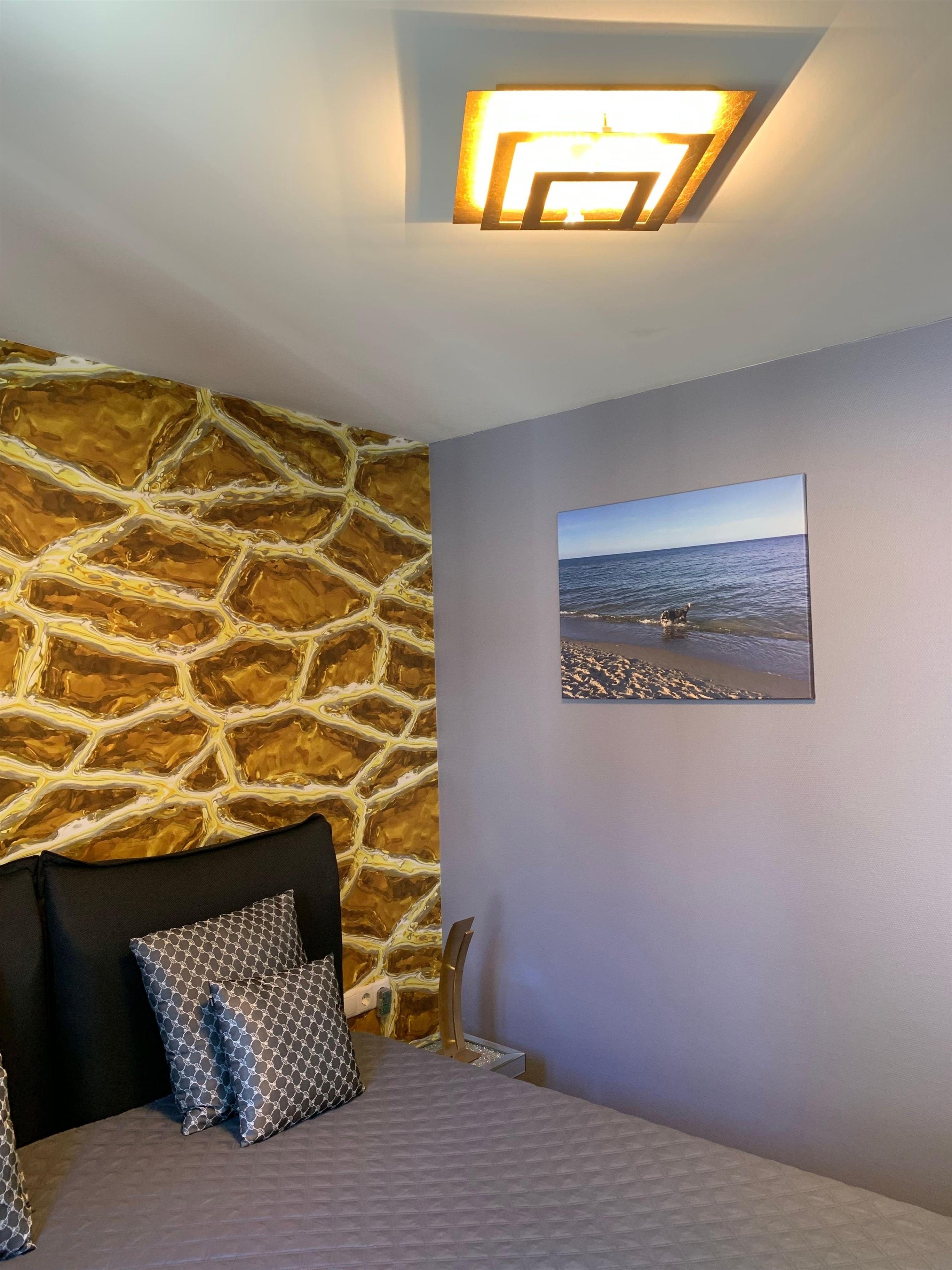 Die Ferienwohnung verfügt über zwei Schlafzimmer mit komfortablen Boxspringbetten und Kleiderschränken. Von beiden Schlafzimmern besteht Zugang zum großzügigen Balkon. Das Wohnzimmer bietet einen tollen Meerblick und ist mit einer sehr gut ausgestatteten, modernen Küchenzeile sowie einer gemütlichen Eckcouch eingerichtet. Das Bad verfügt über eine hochwertige Regendusche. Die Ausstattung ist modern, stilvoll und hochwertig. Hunde sind Willkommen!