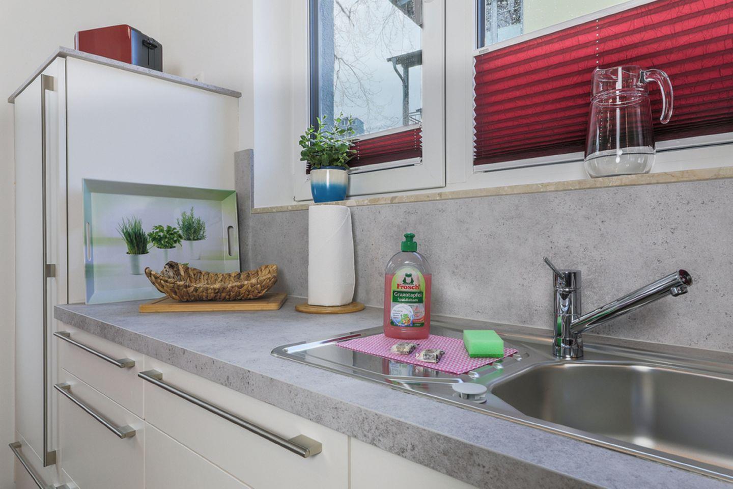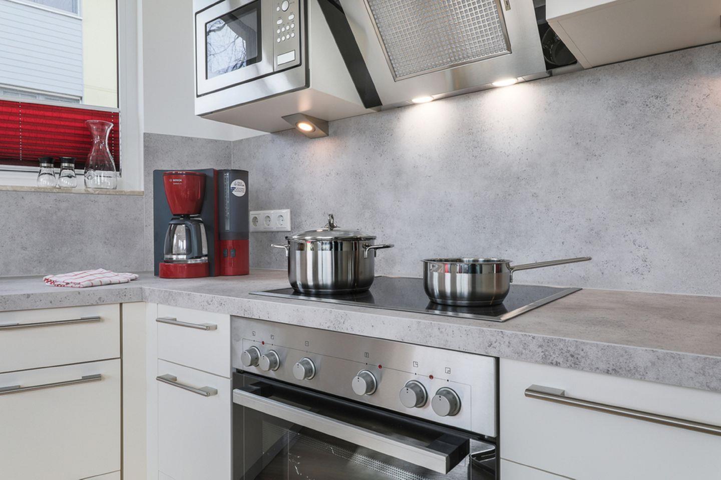 KÜCHE // offene Küche, Ceranfeld, Spülmaschine, Kühlschrank mit Gefrierfach, Mikrowelle, Kaffeemaschine, Toaster, Wasserkocher, reichlich Besteck sowie Geschirr und diverse Küchenutensilien ++