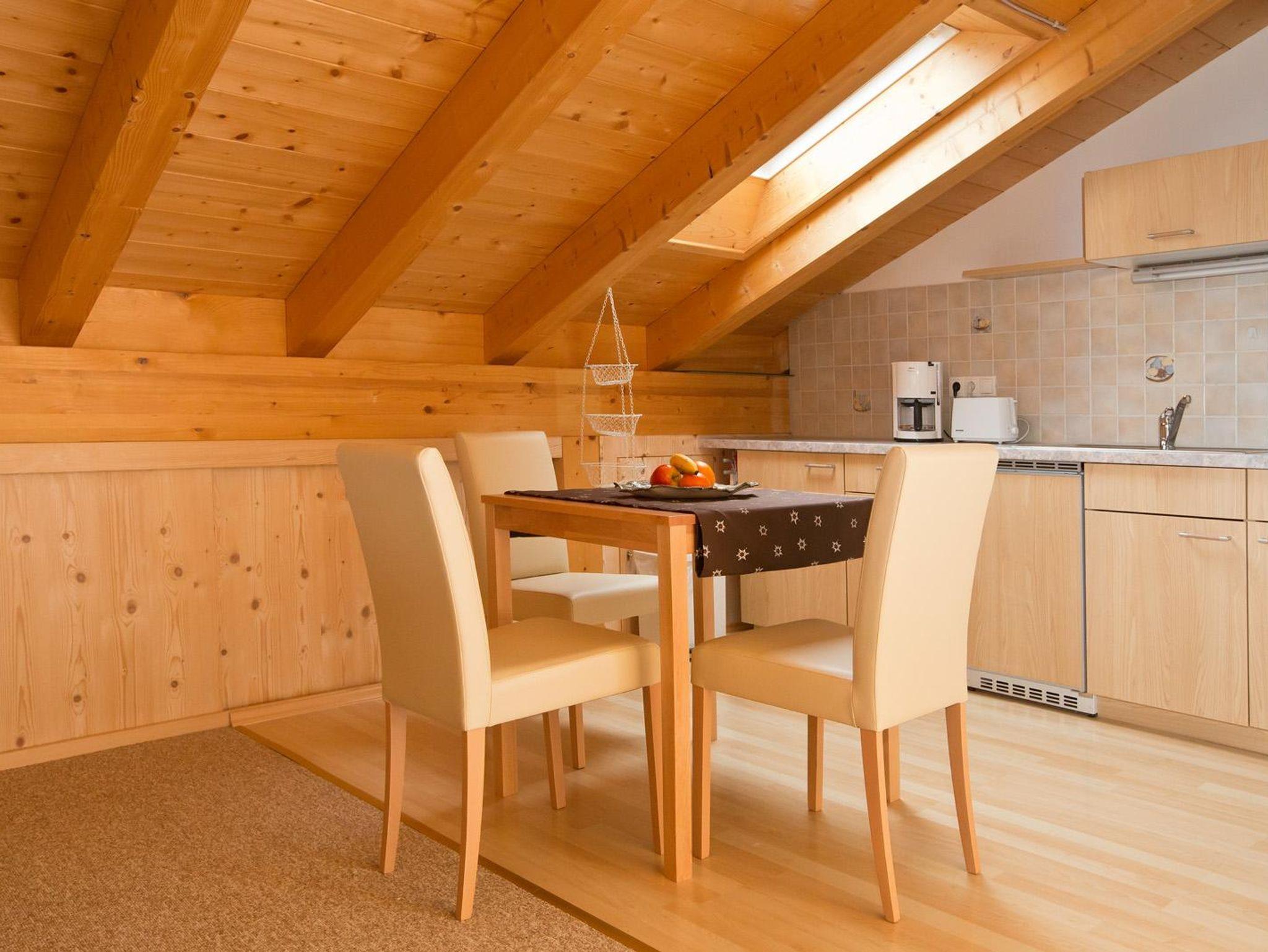 Die Fereinwohnung ist für 2 Personen ausgelegt. Sie verfügt über einen offenen Wohnbereich /TV und Kochbereich mit Essecke. Die Küche ist mit einer Kochplatte, einem Kühlschrank mit Gefriefach, einer Kaffeemaschine und Radio ausgestattet. Das Badezimmer verfügt über Dusche und WC. Separates Schlafzimmer mit Doppelbett aus Zirbenholz massiv. Von der Ferienwohnung aus haben Sie Zugang zu einem eigenen Balkon.