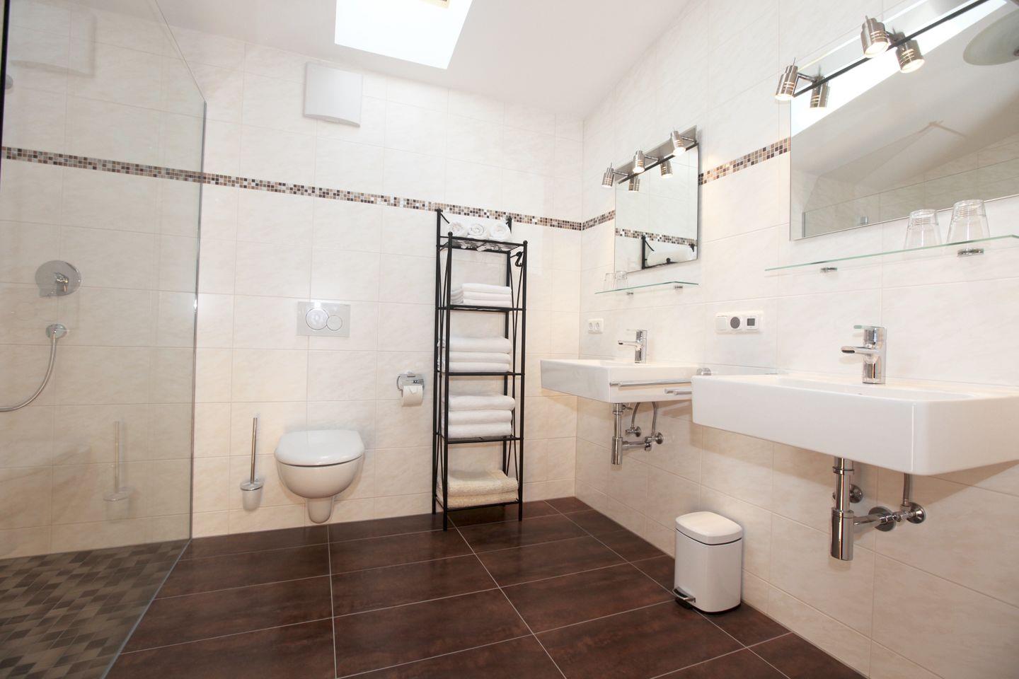 Im Kellergeschoss befinden sich weitere 3 Schlafzimmer mit jeweils 2 Einzelbetten, sowie ein Waschraum mit eingebauter Dusche (mit Duschvorhang). Bei entsprechender Buchung ist die Wohnung auf die Art für insgesamt 14 Personen beziehbar!