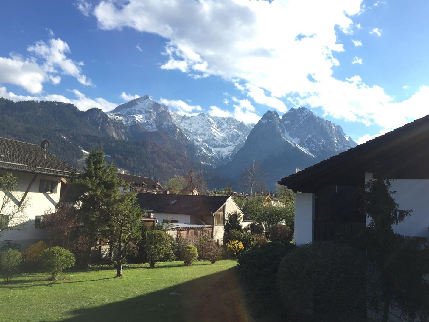 Das großzügige Esszimmer mit breiter Fensterfront ermöglicht nicht nur vom überdachten Balkon einen atemberaubenden Zugspitzblick, auch beim Frühstück oder Abendessen kann man sich in dem Blick auf die Berge von Garmisch-Partenkirchen verlieren. Möchte man sich entspannen, steht hier noch eine gemütliche Couch zur Verfügung. Diese lässt sich bei Bedarf auch ausziehen und zu einer bequemen Schlafgelegenheit für eine 3. Person umfunktionieren.