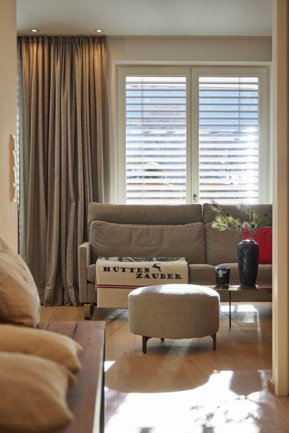 Alle Fenster lassen sich mithilfe elektrischer Rollläden abdunkeln. Eine Fußbodenheizung sorgt auch bei kälteren Temperaturen für wohlige Wärme.