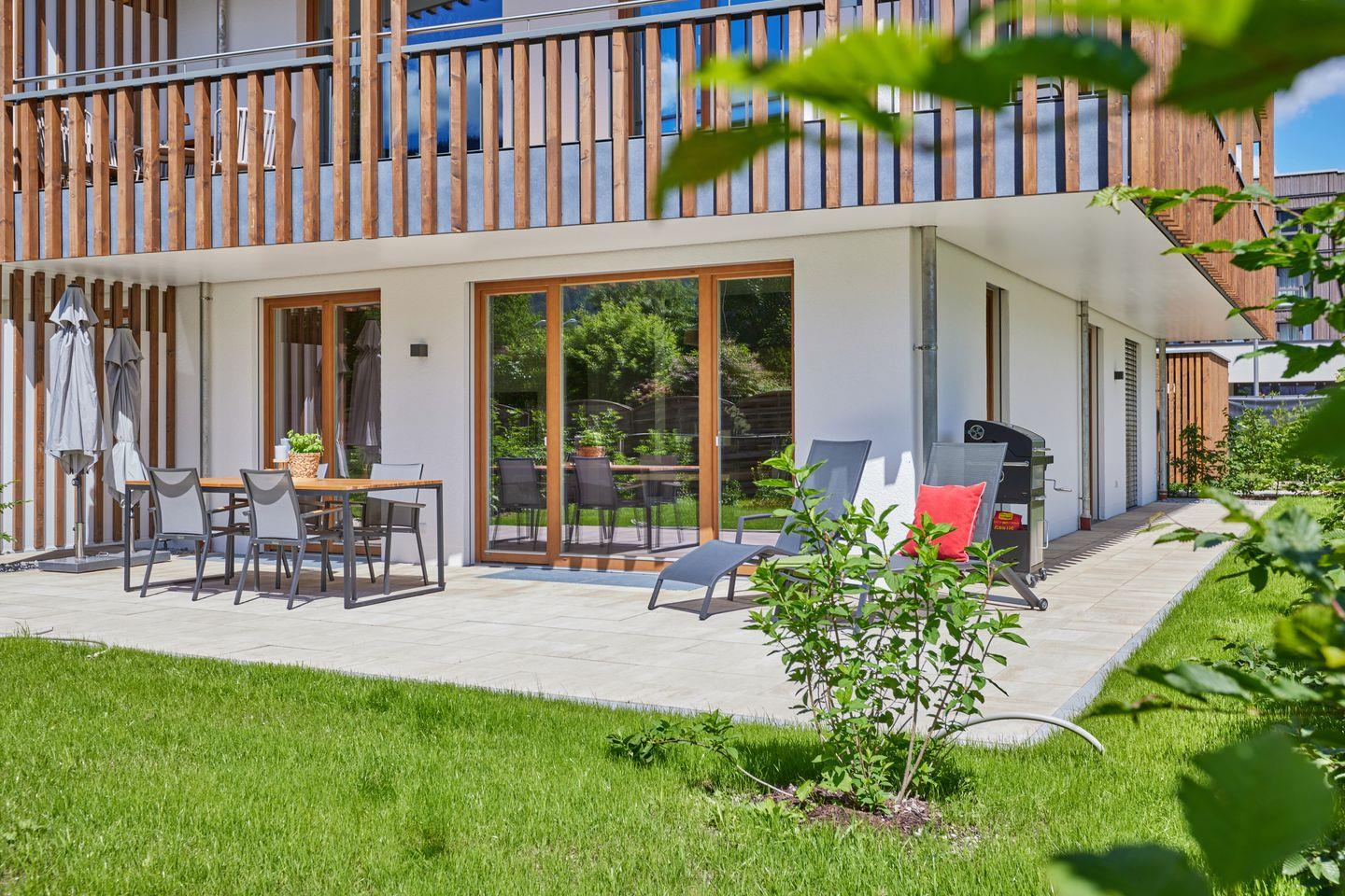 HüttenZauber – für magische Momente. Vergessen Sie Ihren Alltagsstress und lassen Sie sich von dieser modernen Erdgeschosswohnung mit herrlicher Sonnenterrasse verzaubern.