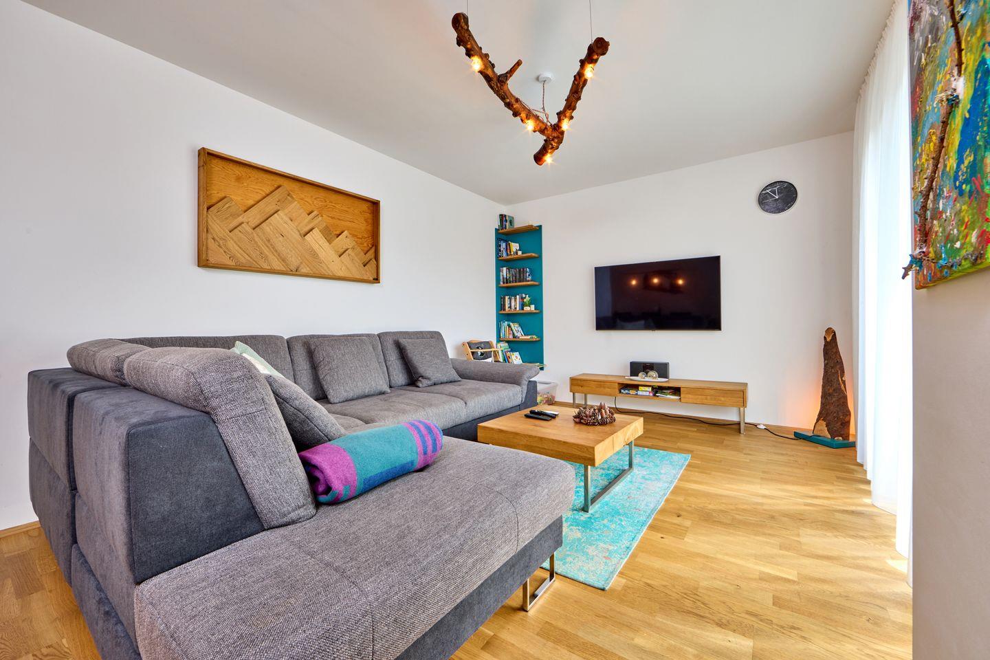 Designerlampen und viele weitere sehr individuelle und praktische Details tragen zum zweifelsohne individuellen Flair der Wohnung bei. Abgerundet wird dieser Bereich mit Zugang auf den Balkon mit Ausrichtung SW, hier kann das herrliche Bergpanorama genossen werden.