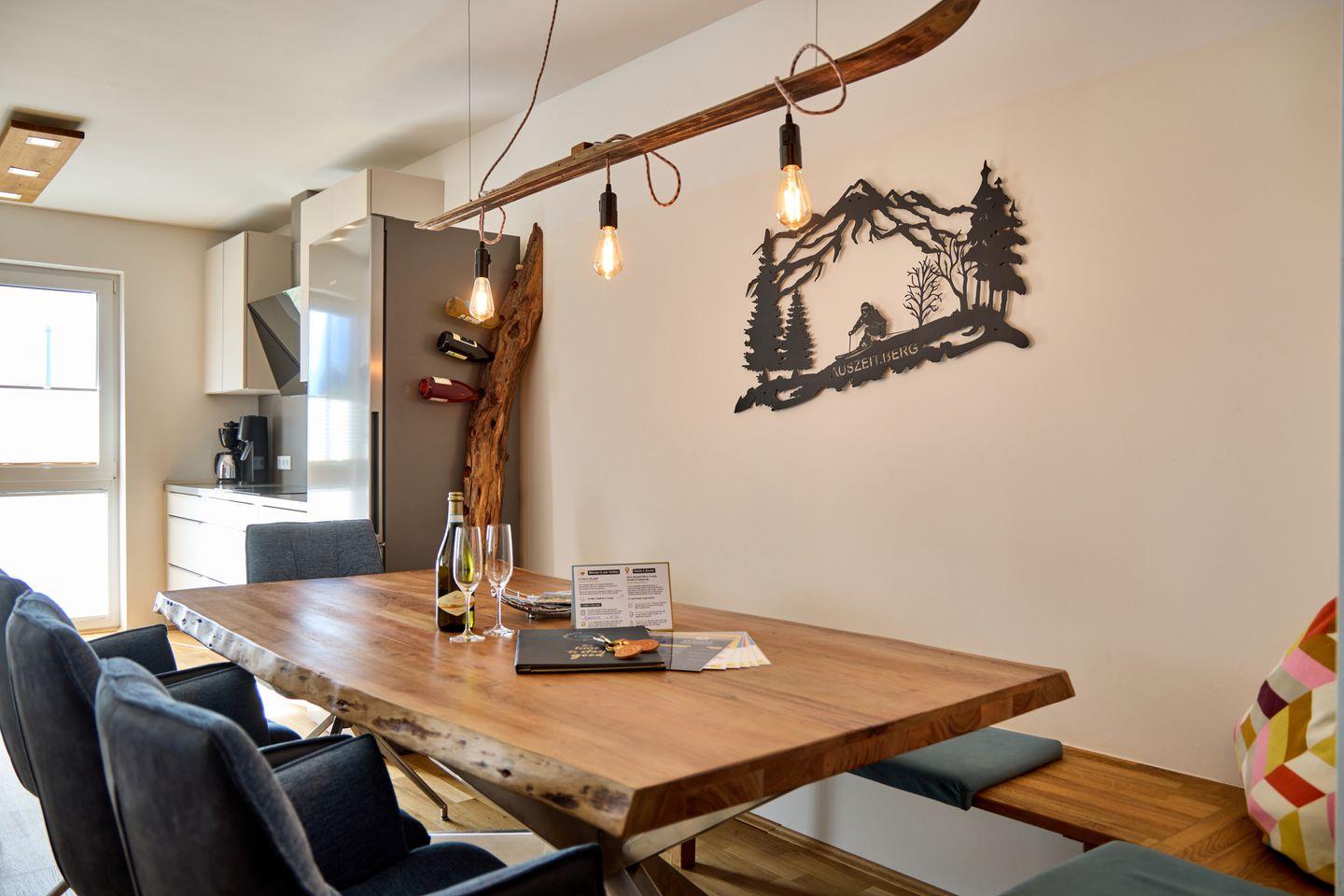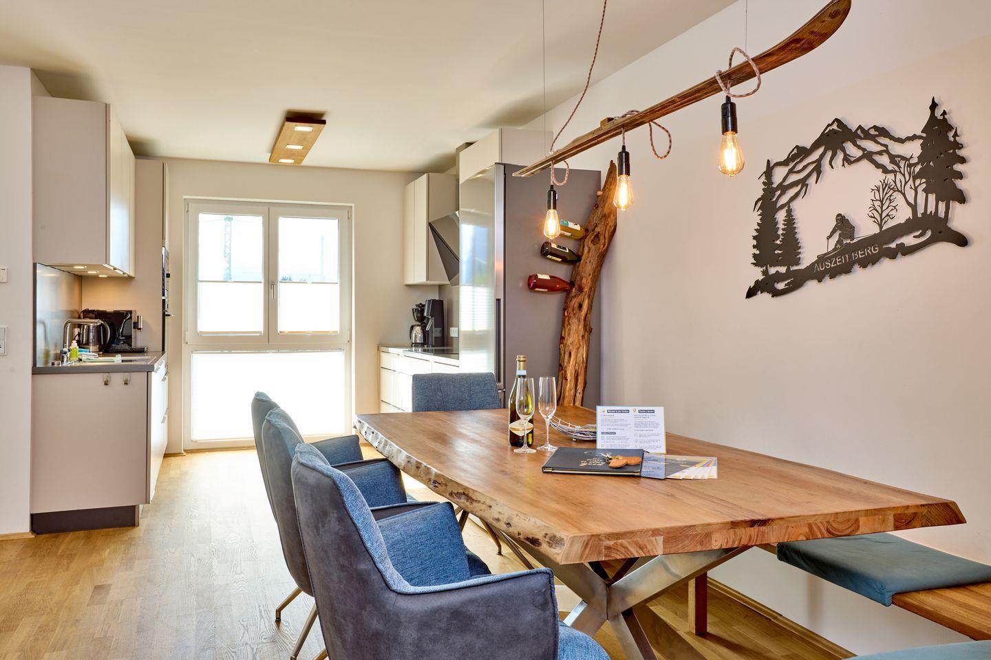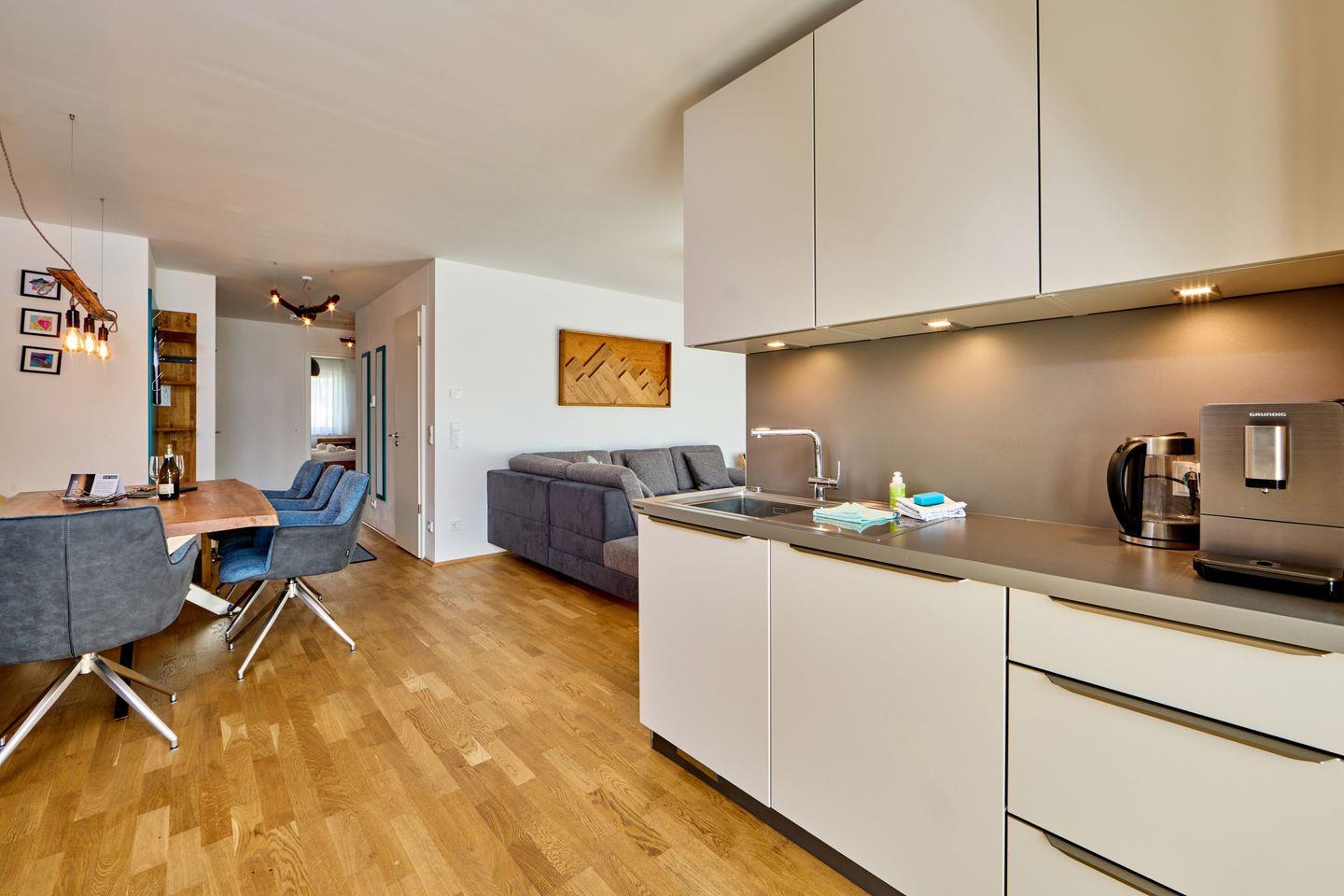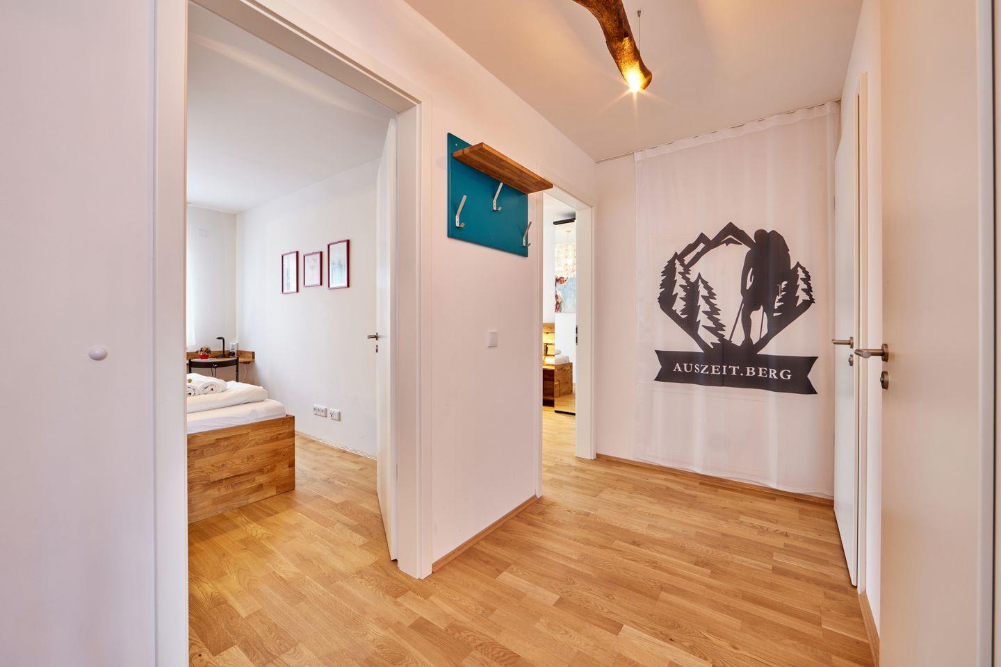 Mit dem ersten Schritt in die Wohnung ist klar, die Auszeit in den Bergen beginnt hier. In der Diele findet sich eine großzügig gestaltete Garderobe mit mehreren Spiegeln. Der helle, lichtdurchflutete Wohn- / Essbereich mit offener Küche lädt zum geselligen Verweilen ein und bietet zugleich beste Möglichkeiten den selbstgekochten kulinarischen Genuss nicht zu kurz kommen zu lassen.
