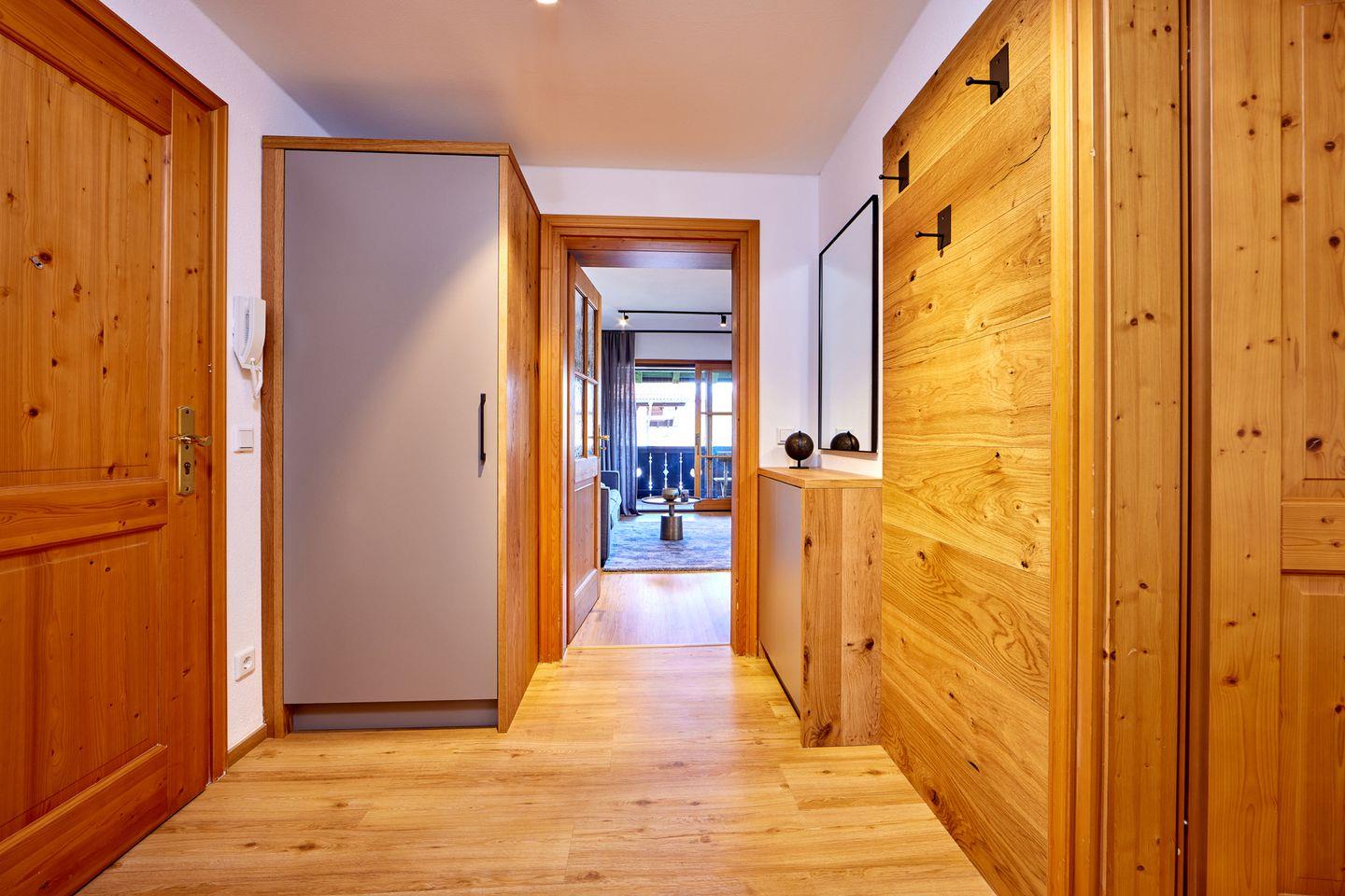 Den Gästen stehen ein privater Skiraum mit Stauraum für Skier und Fahrräder, einschließlich E-Bike-Lademöglichkeit, sowie ein eigener Tiefgaragenstellplatz und WLAN zur Verfügung.