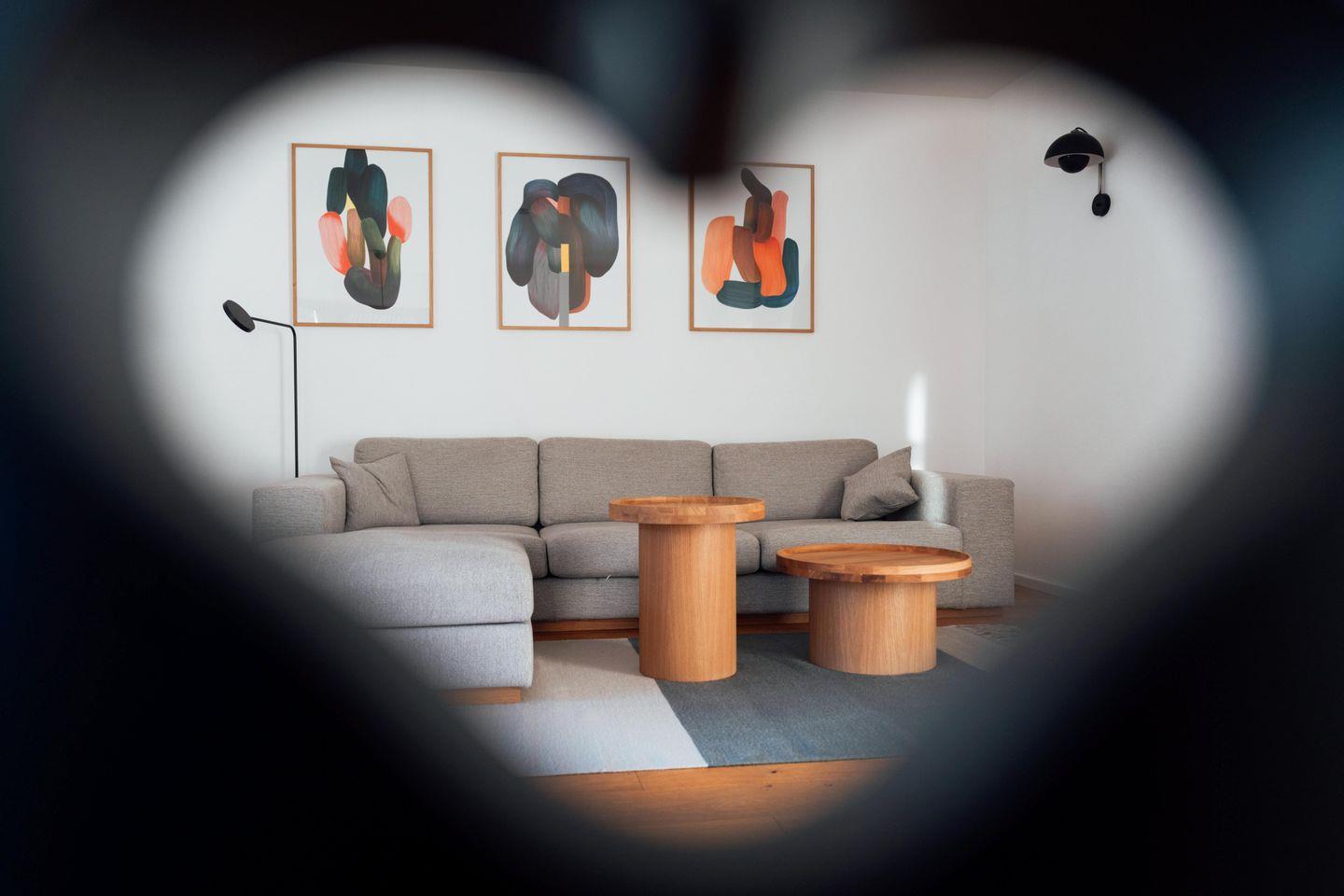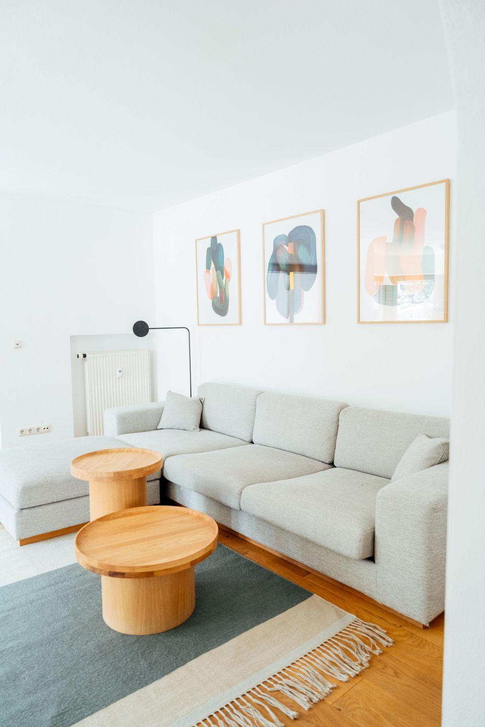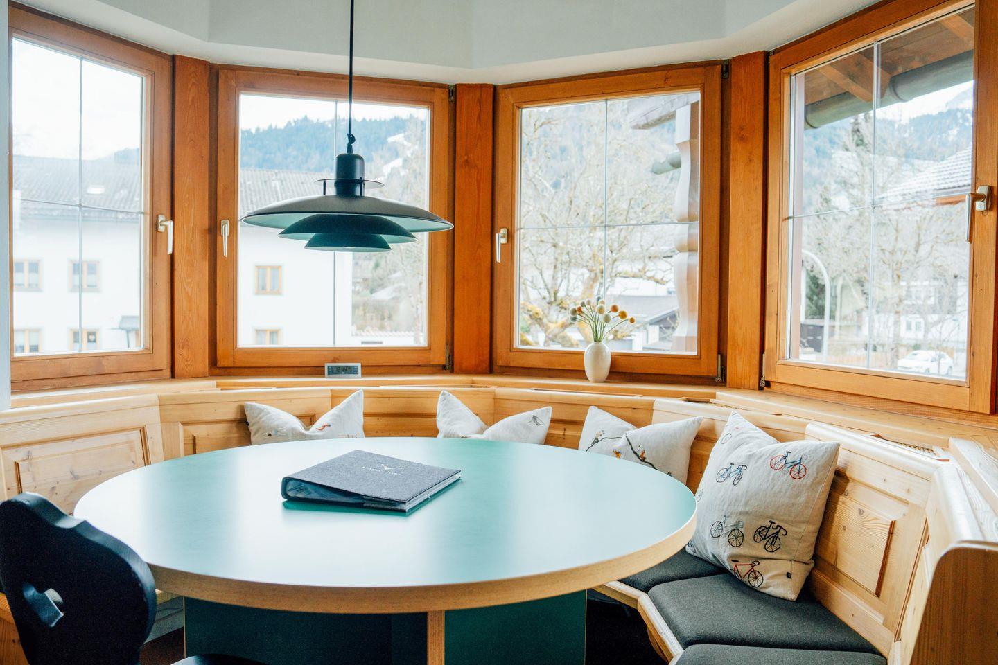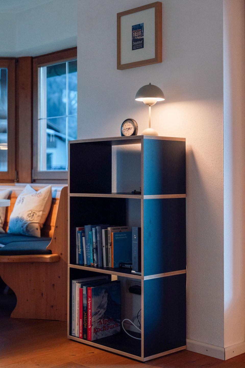 Innen erwartet Sie ein gelungener Mix aus traditionellen Elementen, warmem Holz, neben klaren Linien und stimmigen Farbakzenten der hochwertigen Einrichtung. Das Wohnzimmer bietet eine gemütliche Couch, TV und eine schöne Essecke im Erker; von hier gelangen Sie direkt auf die Südseite des Balkons. Das Schlafzimmer ist mit Doppelbett und einem geräumigen, offenen Stauregal ausgestattet – praktisch und angenehm luftig. Außerdem steht hier ein praktischer Sekretär mit Stromanschluss bereit - ideal um auch im Urlaub einmal konzentriert zu arbeiten. Besonders komfortabel sind das Badezimmer mit zwei Waschbecken und Duschwanne sowie das zusätzliche Gäste-WC. In der separaten, voll ausgestatteten Küche kochen Sie entspannt wie zuhause und haben direkten Zugang zur Ostseite des Balkons.