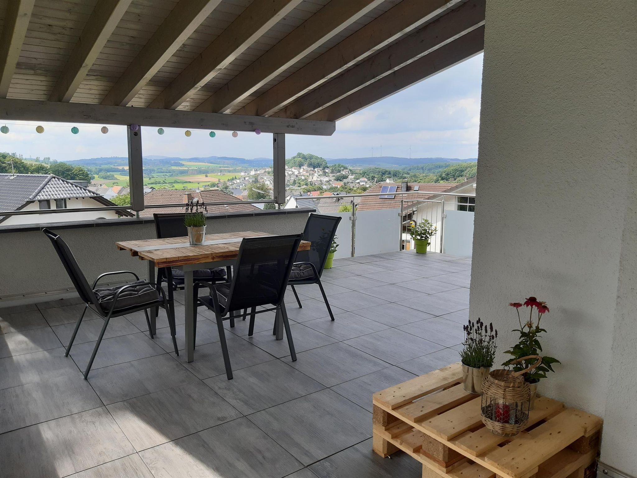 Unser Ferienhaus hat eine Wohnfläche von 100 qm und lädt Sie in das schöne Westerwald-Dorf Girkenroth (600 EW) ein. Das liebevoll hochwertig und modern eingerichtetes Ferienhaus steht Ihnen samt Grundstück von 800 qm zur alleinigen Nutzung zur Verfügung. Das Haus verfügt über 2 separate Schlafzimmer (1x Doppelbett 180*200cm) (2x Einzelbett 90*200), zwei Bäder mit Dusche und WC, eine Waschmaschine, sehr hochwertig ausgestattete Küche, großes Ess-Wohn-zimmer und Abstellraum. Vermietet wird an bis zu 6 Personen, (Ausziehcoach im Wohnzimmer). Bei Ankunft sind Ihre Betten bezogen. Zur Erstausstattung liegt pro Person ein Duschtuch und ein Handtuch für Sie bereit. Das absolute Highlight ist die große, teilweise überdachte Terrasse mit gemütlicher Gartenlounge, Weber Holzkohlegrill und faszinierendem Weitblick.