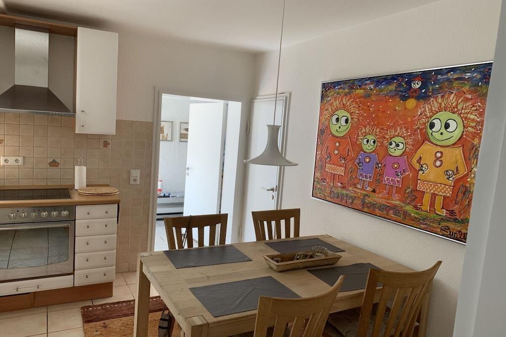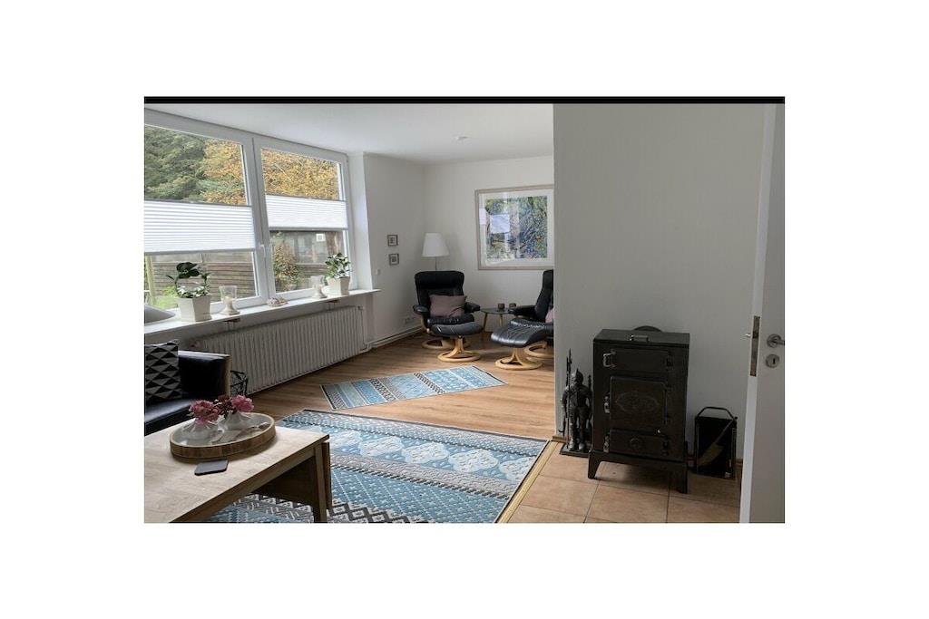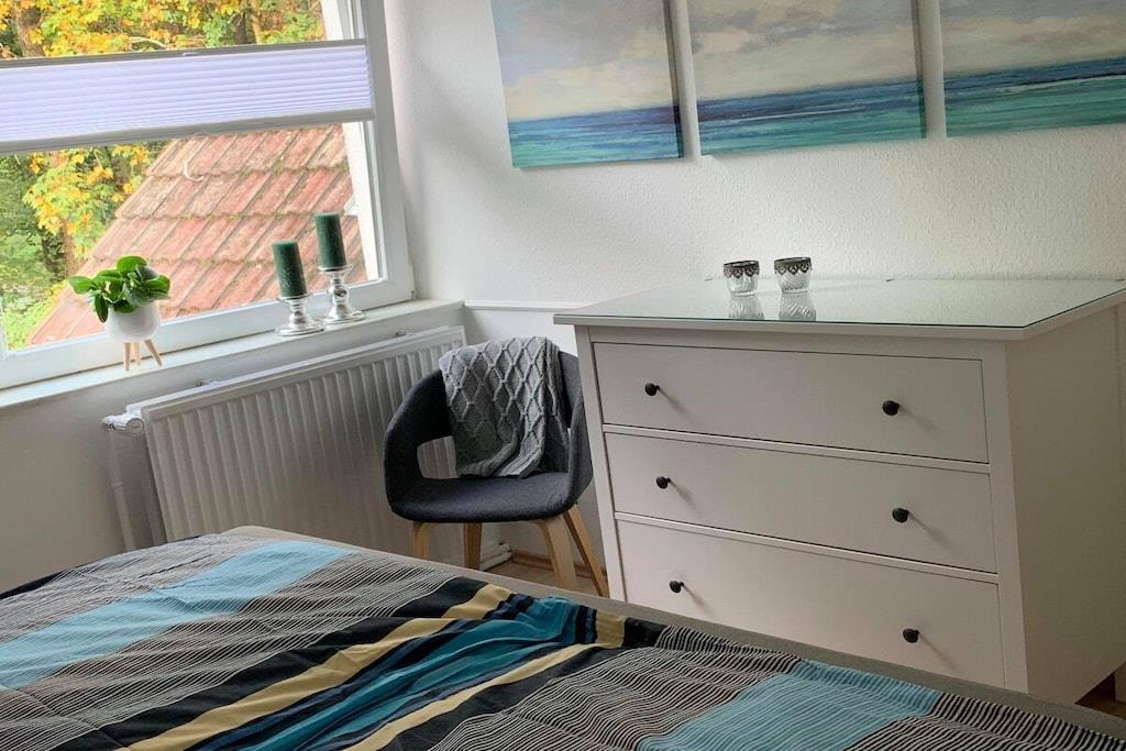Our non-smoking holiday home, "Utspann," is located right on the edge of the forest and is suitable for four people. The 100 m² living space extends over two bedrooms, each with a double bed, a cozy living room with a TV, a reading corner, and direct views of the countryside, a fitted kitchen with a dining area and dishwasher, and a bathroom with natural light. Enjoy the idyllic and tranquil setting of this untouched landscape.