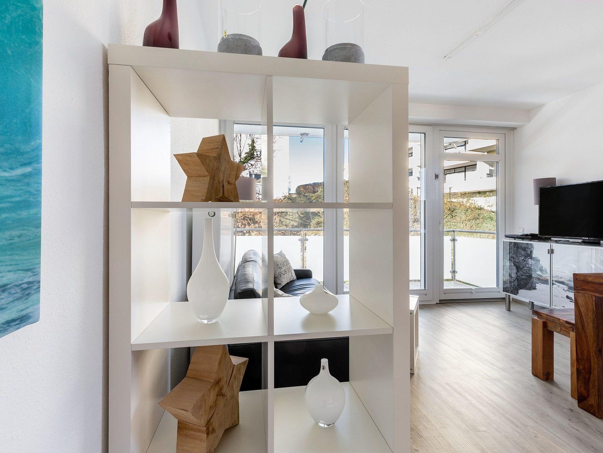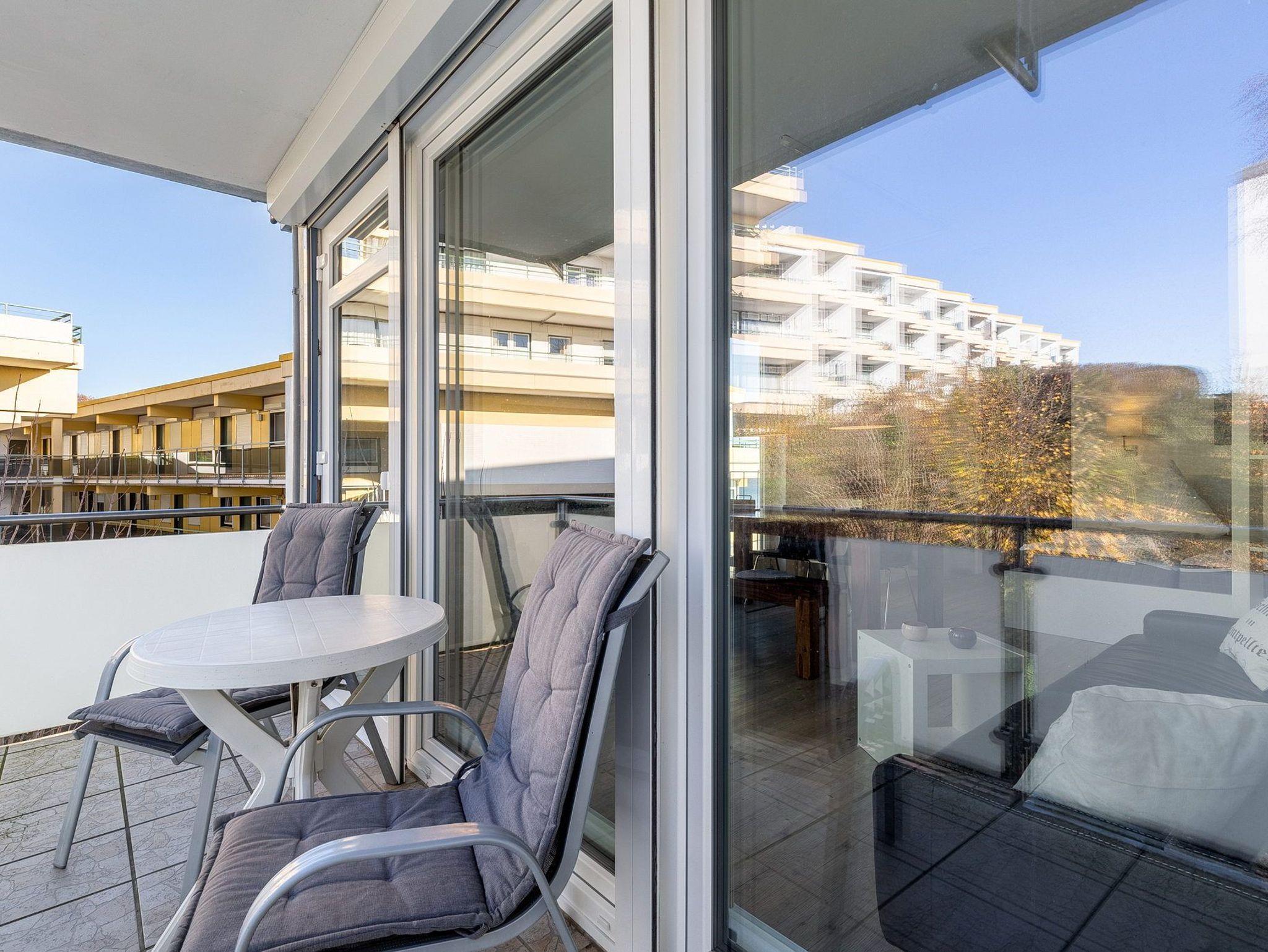 Kostenloser Strandkorb, Balkon in nord-westliche Richtung, Teilseeblick vom Wohn- und Esszimmer, eigener Pkw-Stellplatz direkt hinter dem Gebäude (sehr schmal), Waschmaschine, Trockner und Sauna gegen Gebühr, Fahrstuhl vorhanden.