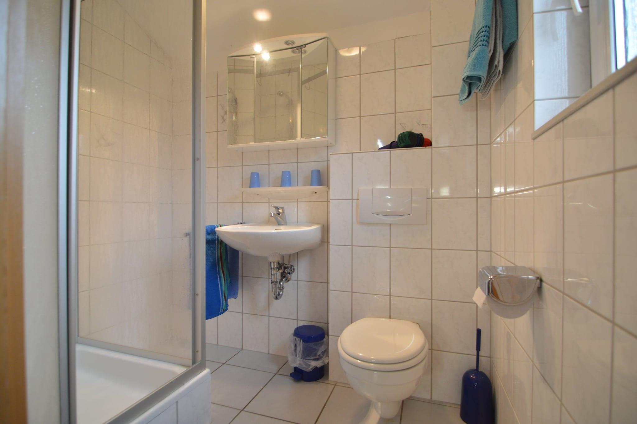 This peaceful apartment in Gransdorf has 2 bedrooms and can accommodate 4 people. Ideal for a family, it has a terrace which offers scenic views of the surrounding whilst you enjoy your morning cuppa. For active holidaymakers, the possibilities are endless here. You can go hiking, fishing, swimming or golfing. And you definitely should not miss a visit to the cities of Trier or Luxembourg or you can think of the Bitburger brewery, the zoo in L?nebach, the Eifelpark Gondorf or the beautiful river Mosel. A cosy living cum dining room with TV, fireplace, and balcony where you can enjoy some precious moments with your family. A barbecue is in place for you to play with your cooking skills. Children's bed and high chair are offered to the little guests. This pet-friendly apartment allows 2 pets on board for some extra charge. You can check into the property between 3-8 PM whereas you can check-out from 9-10 AM.
